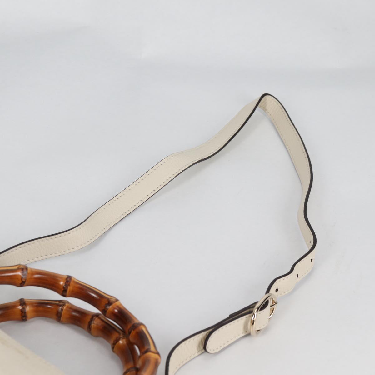GUCCI Bamboo Hand Bag Leather 2way White Gold 336032 Auth 135213V