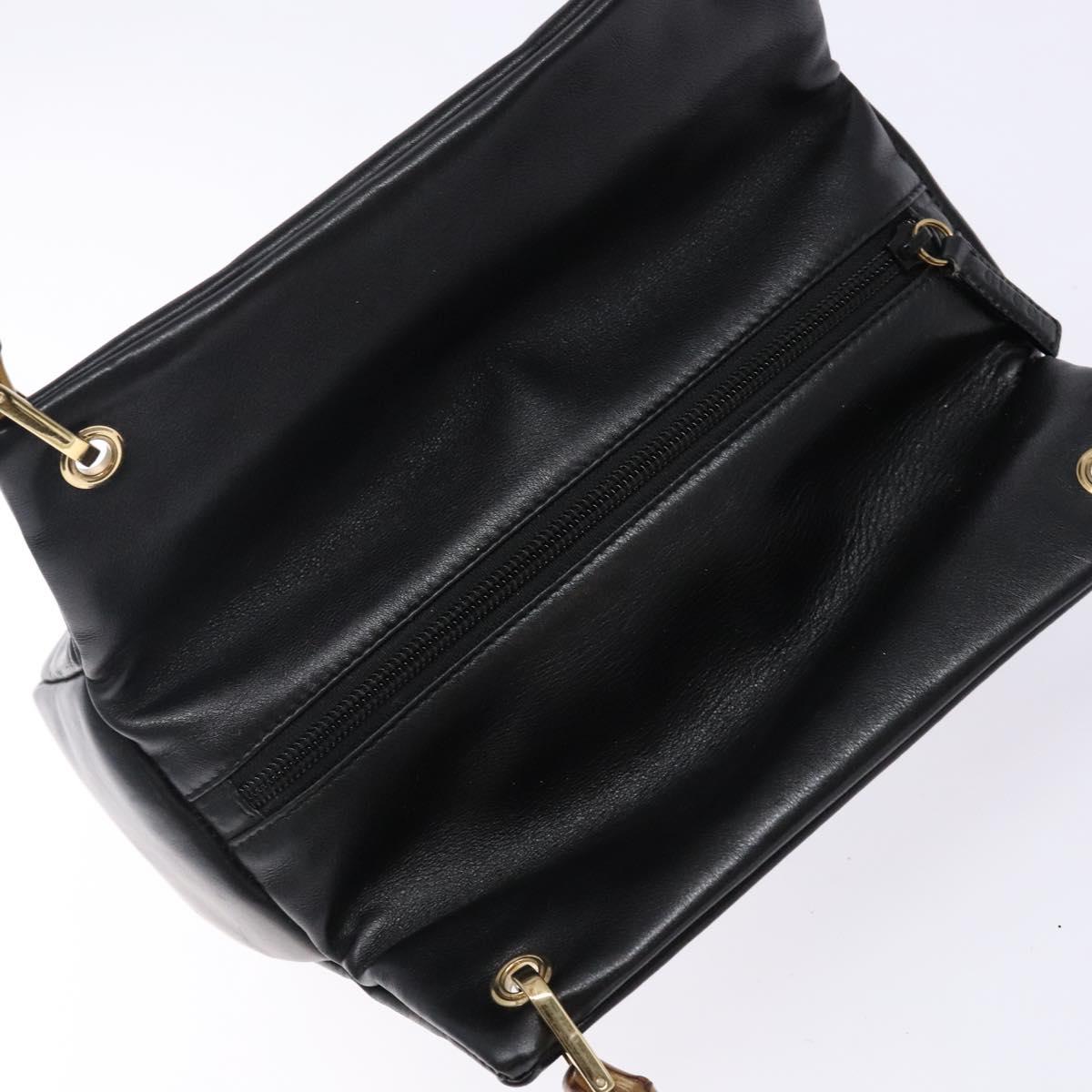GUCCI Bamboo Hand Bag Leather Black Gold 000 3444 0575 Auth ep10729