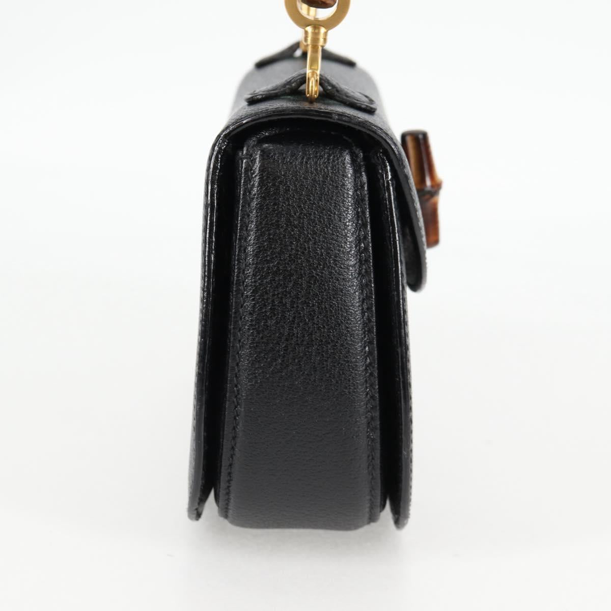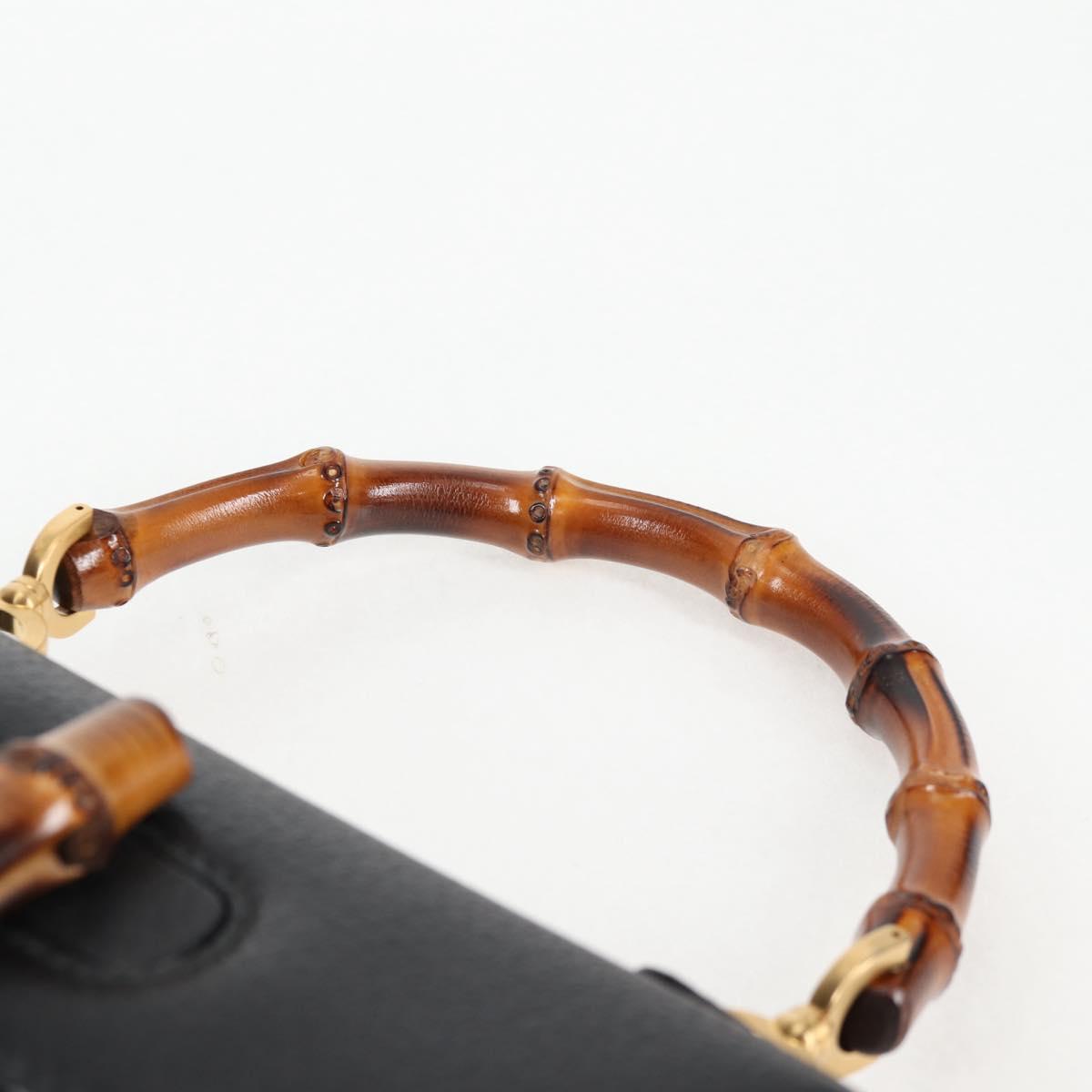 GUCCI Bamboo Hand Bag Leather Black Gold 001 1781 1577 0 Auth 137706A