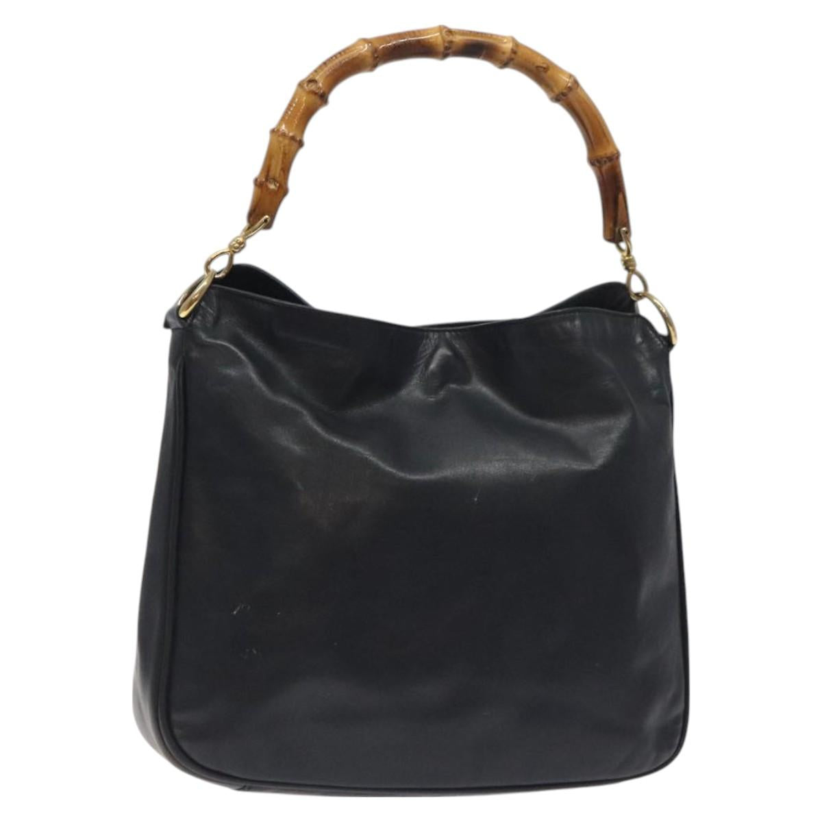 GUCCI Bamboo Hand Bag Leather Black Gold 001 2113 1638 Auth 130141