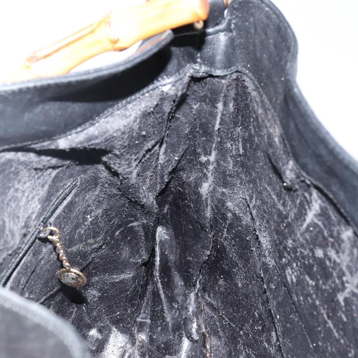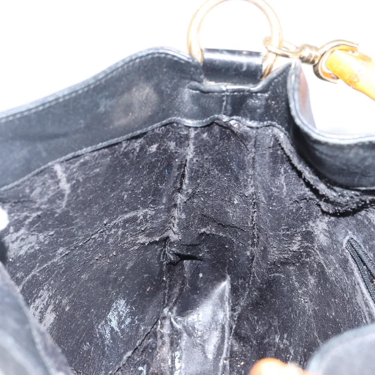GUCCI Bamboo Hand Bag Leather Black Gold 001 3754 1638 Auth BA6049