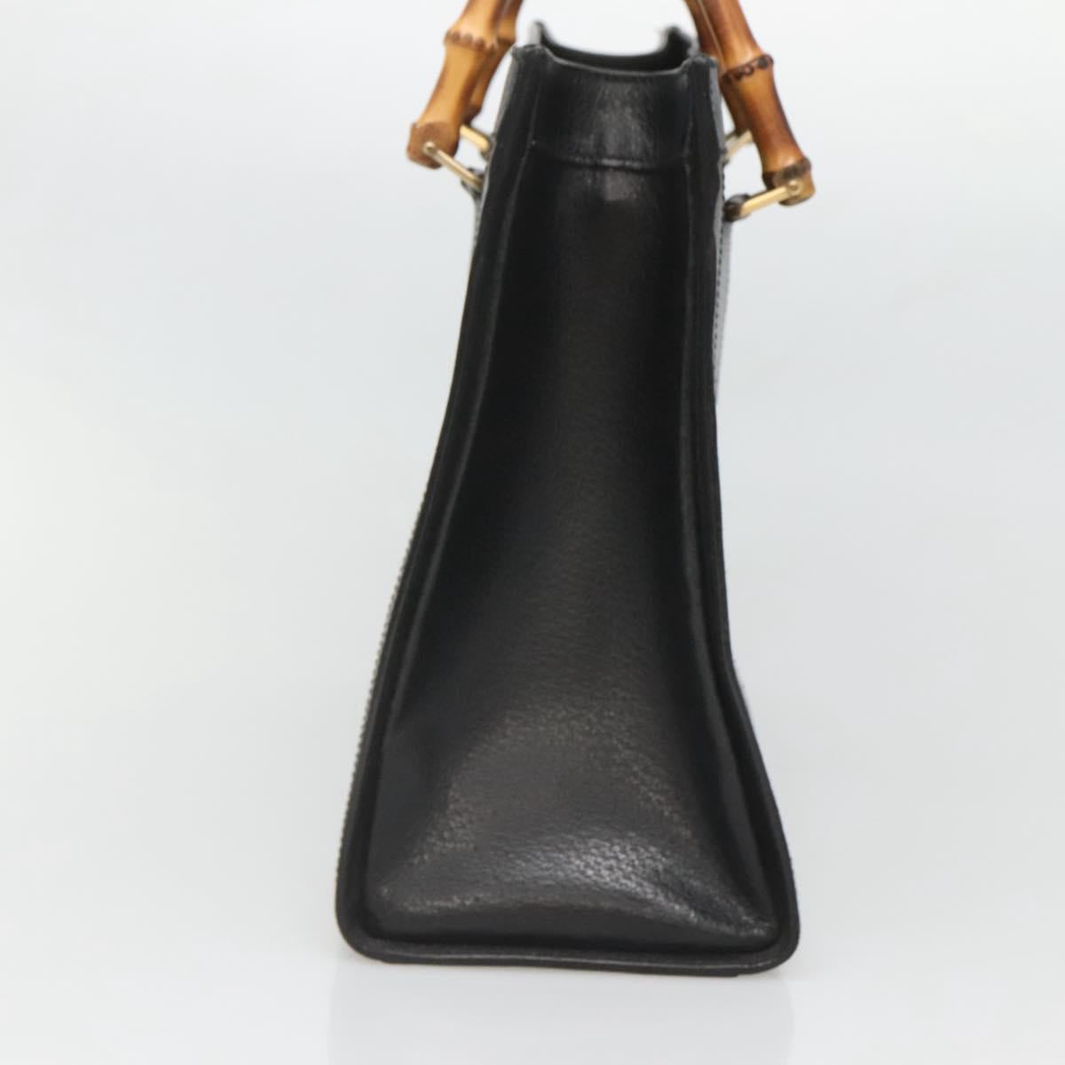 GUCCI Bamboo Hand Bag Leather Black Gold 002 1095 0260 Auth mr1335