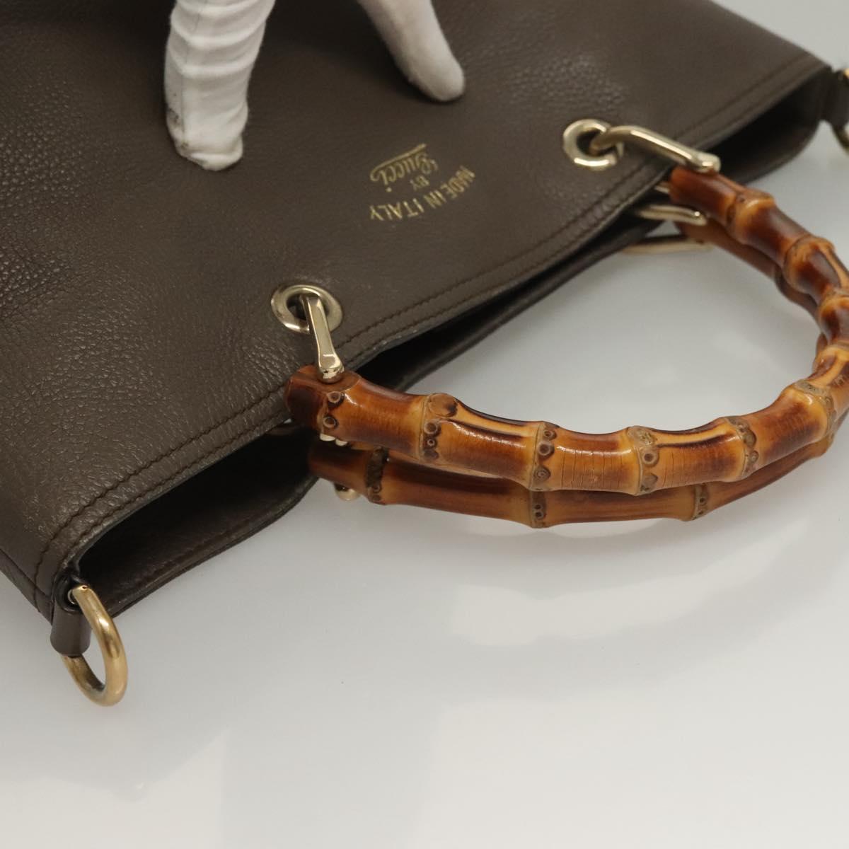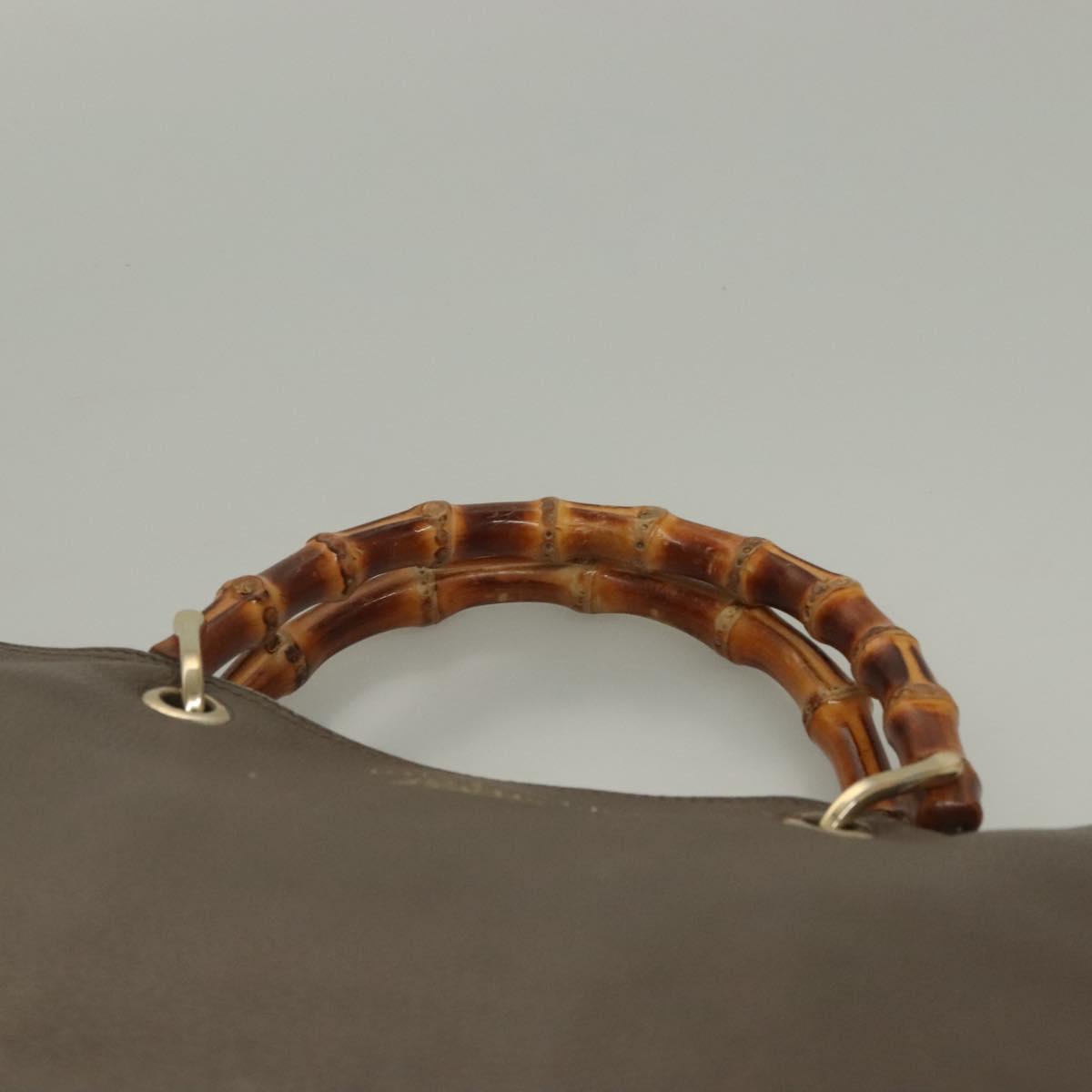 GUCCI Bamboo Hand Bag Leather Gray Gold 323663 Auth bs27789