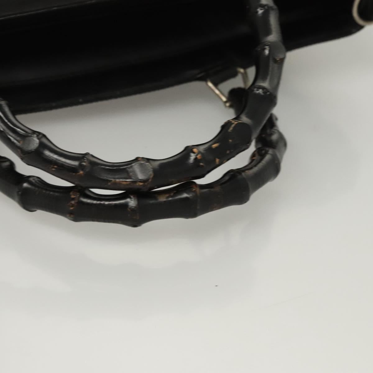 GUCCI Bamboo Hand Bag Nylon 2way Black Silver 000 1998 0588 Auth ar13511