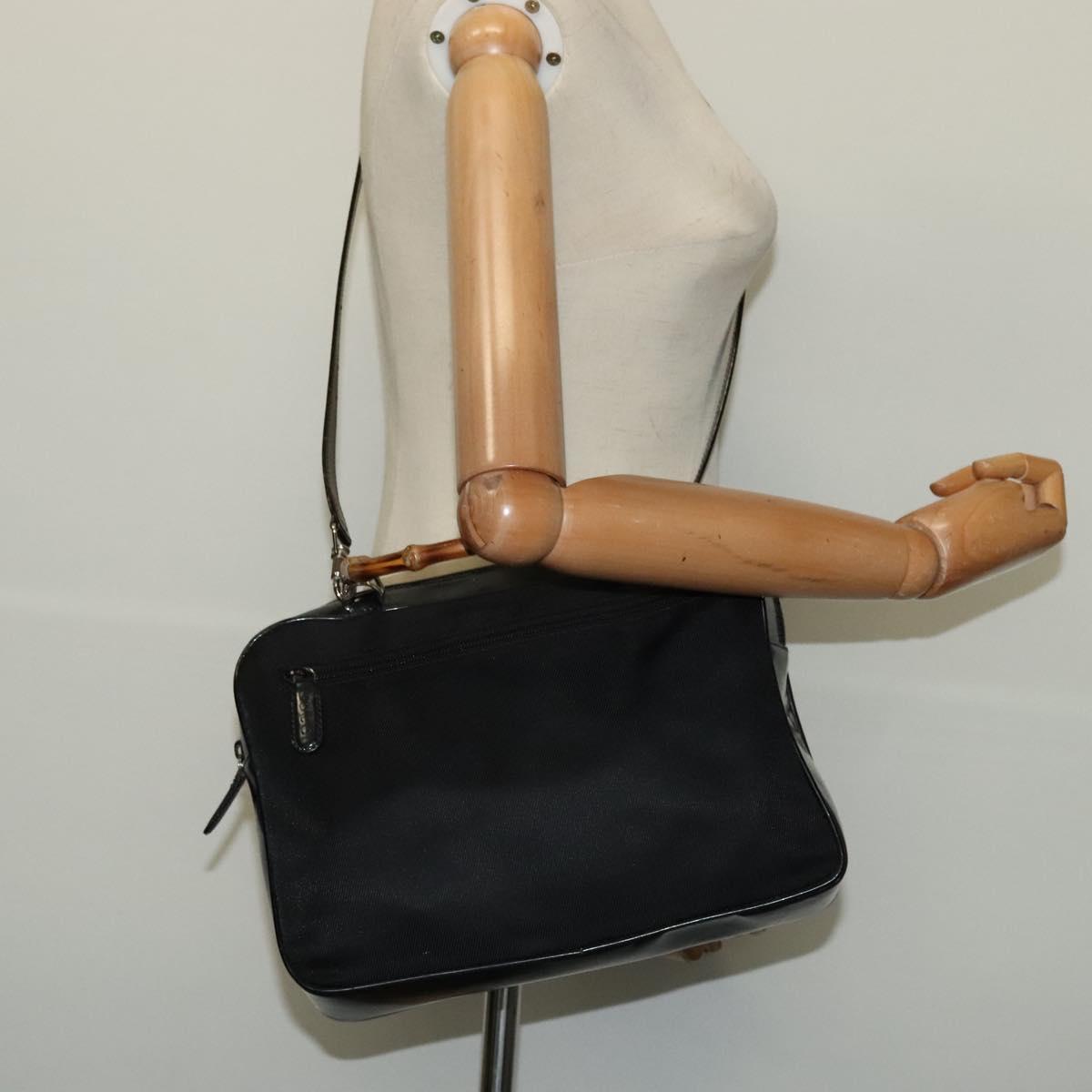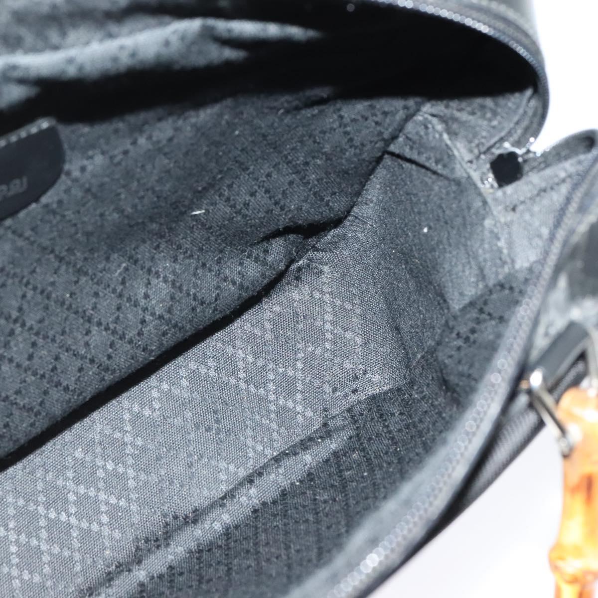 GUCCI Bamboo Hand Bag Nylon 2way Black Silver 000 2040 0538 Auth SW805