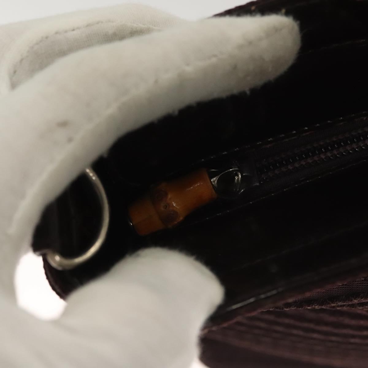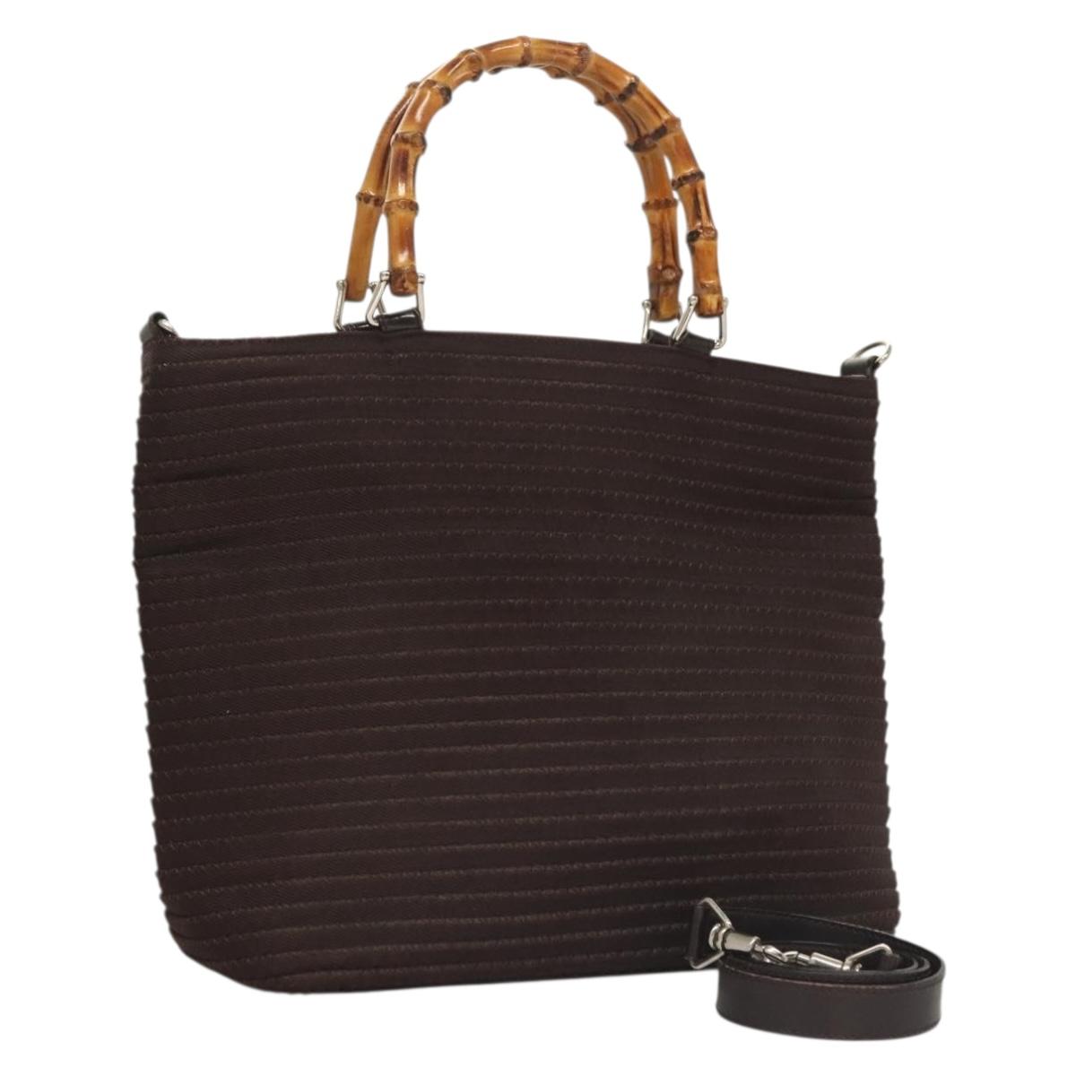 GUCCI Bamboo Hand Bag Nylon 2way Brown Silver 000 1998 0540 Auth ti3282