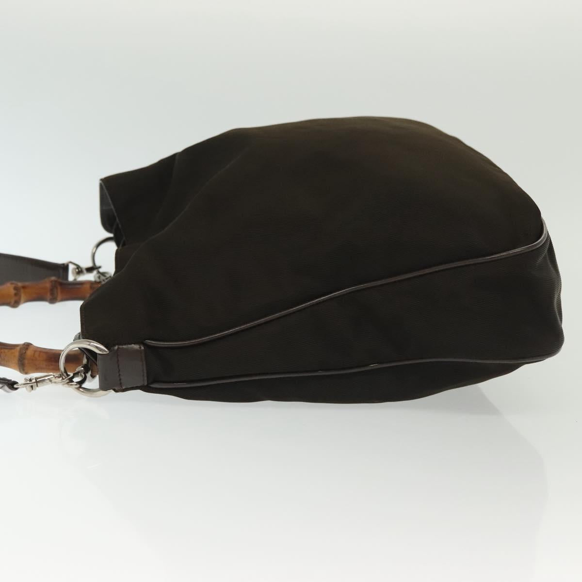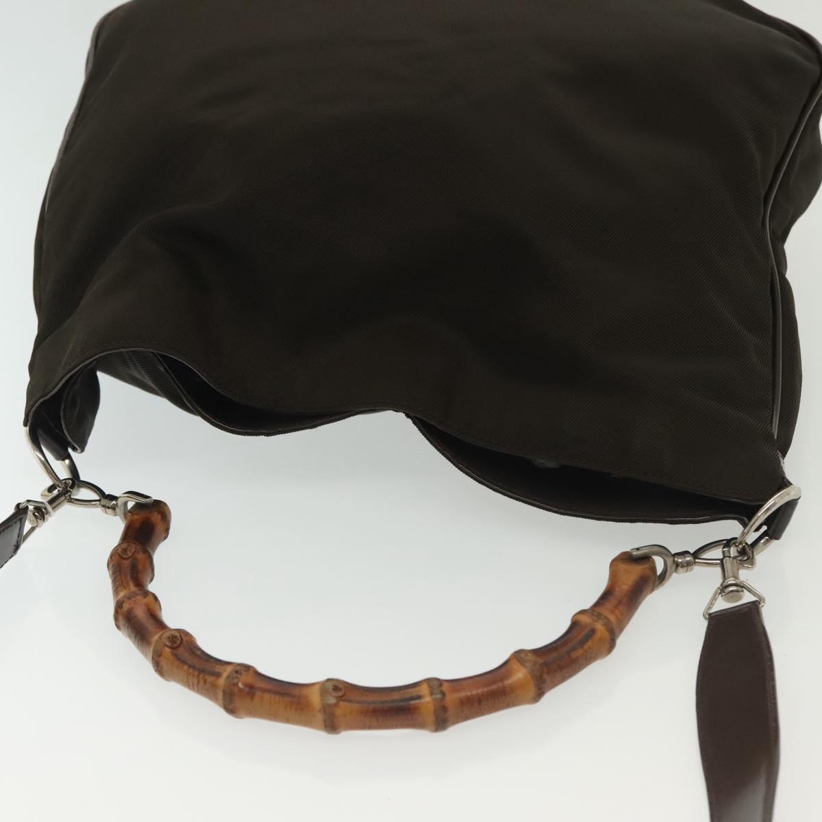 GUCCI Bamboo Hand Bag Nylon 2way Brown Silver 001 2113 1577 Auth ep9917