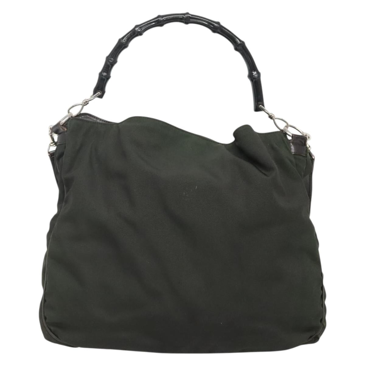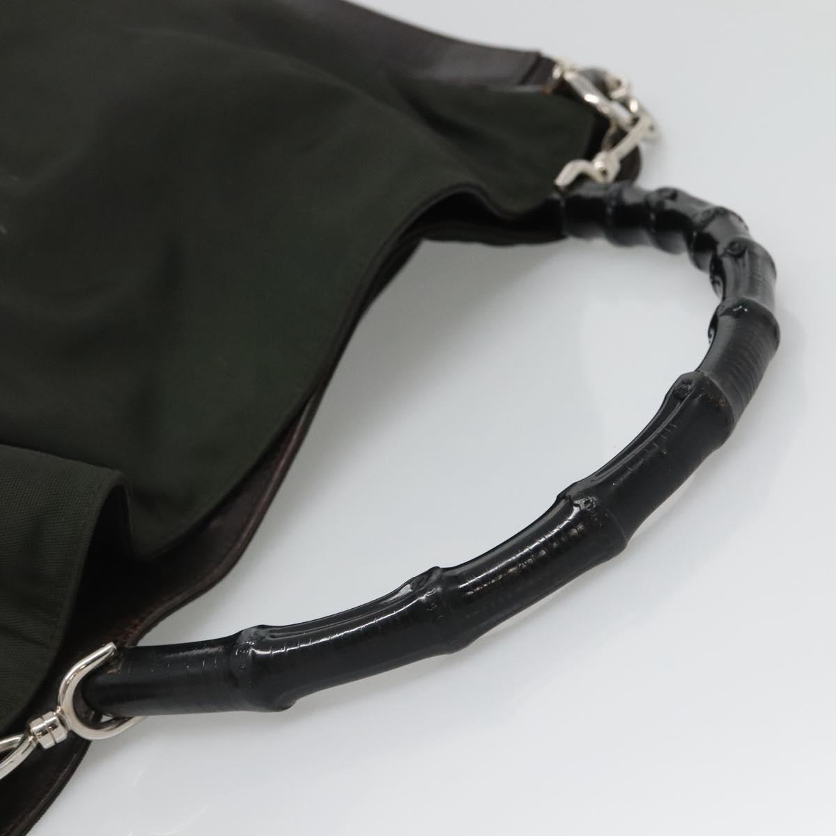 GUCCI Bamboo Hand Bag Nylon 2way Khaki Silver 001 1577 2123 Auth sw1236