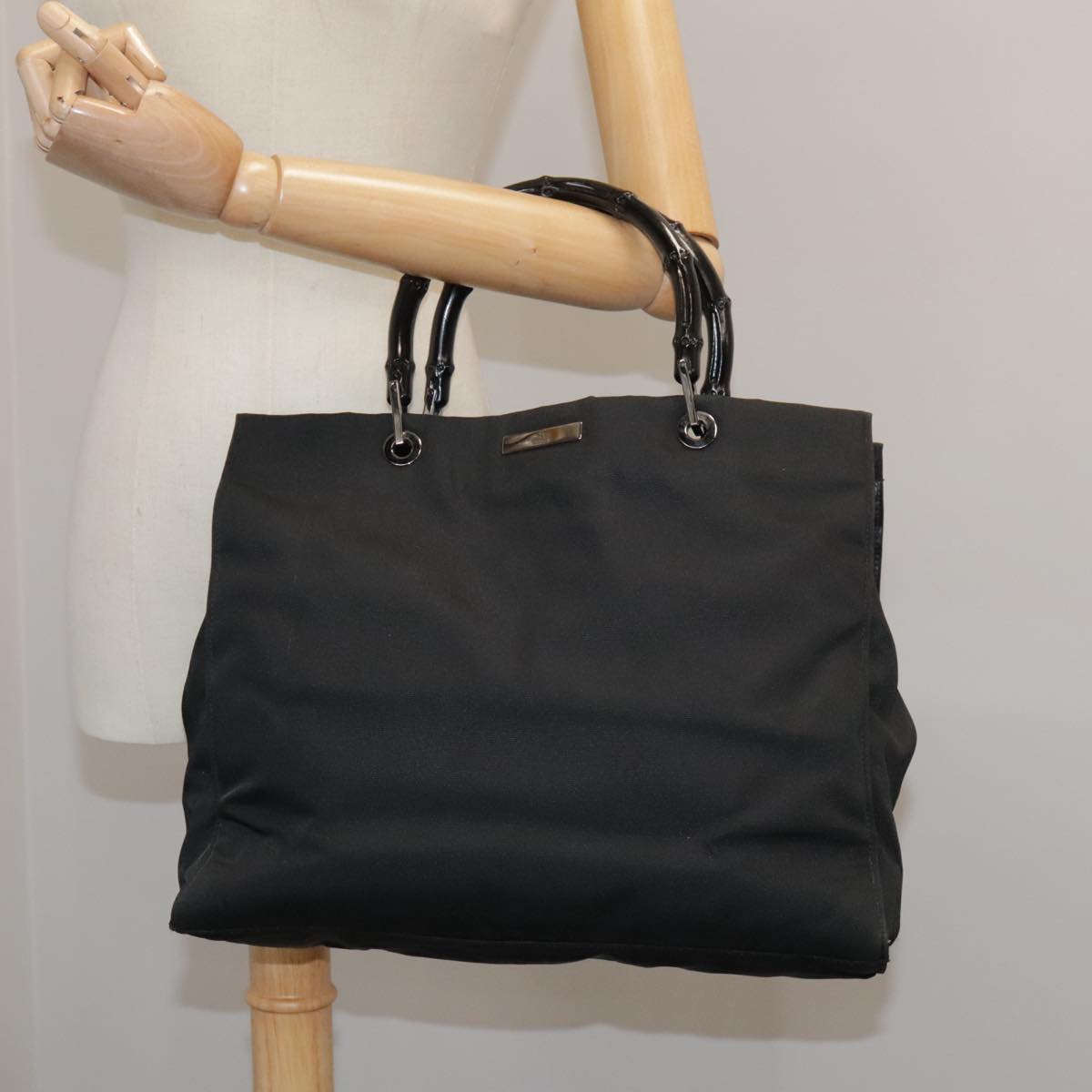 GUCCI Bamboo Hand Bag Nylon Black 002 1010 3444 Auth ep7044