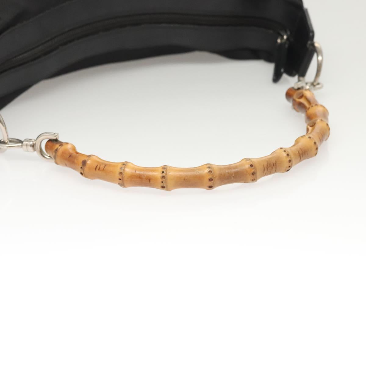 GUCCI Bamboo Hand Bag Nylon Black Silver 000 1956 0531 Auth bs26234