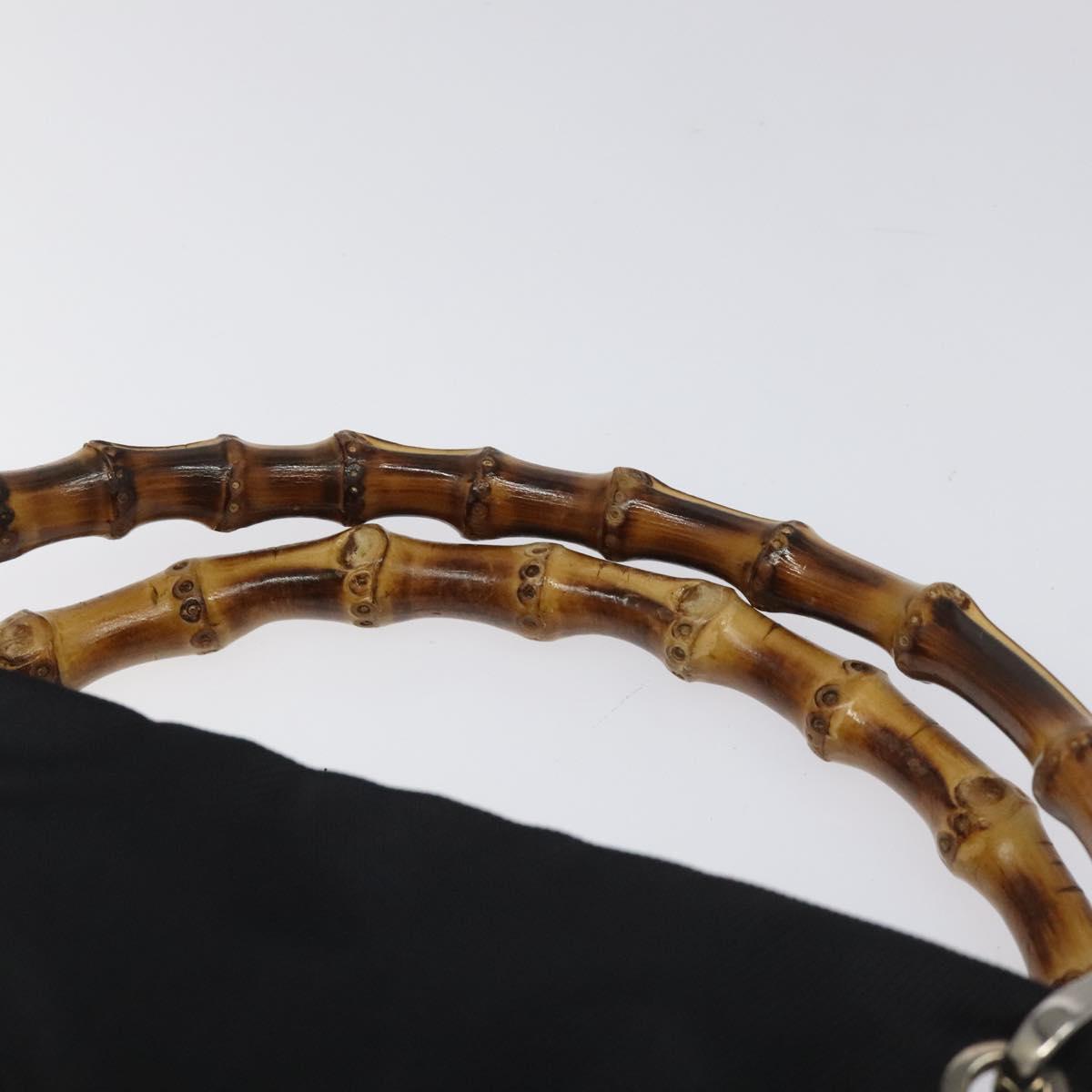 GUCCI Bamboo Hand Bag Nylon Black Silver 000 2865 0575 Auth ar13254