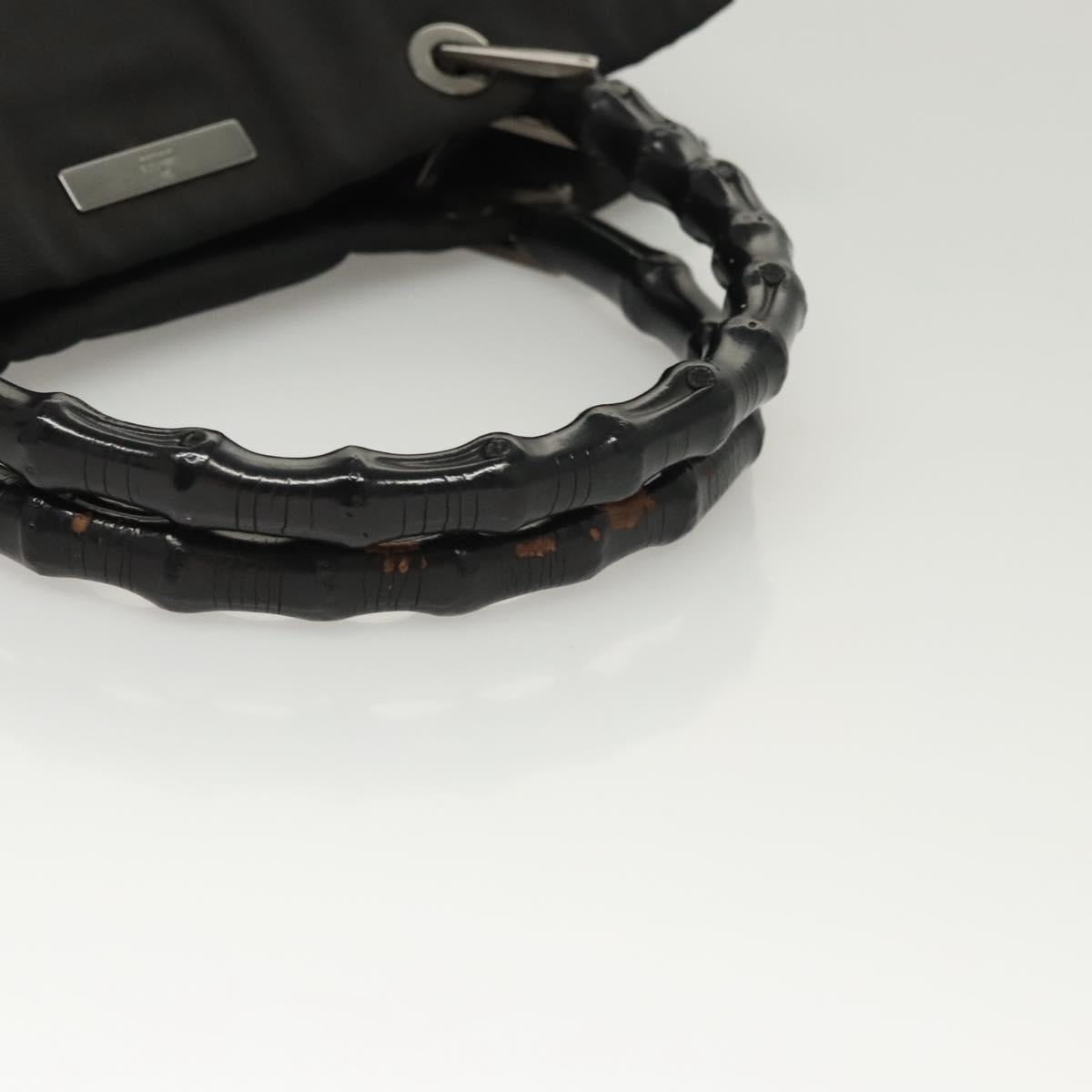 GUCCI Bamboo Hand Bag Nylon Black Silver 032 1016 Auth ep9066
