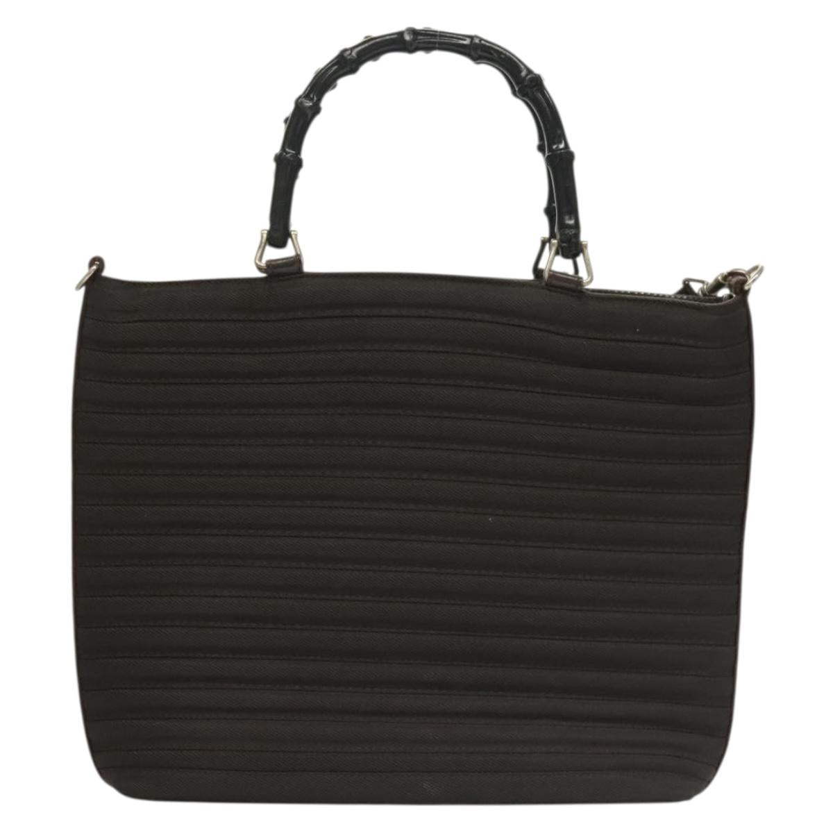GUCCI Bamboo Hand Bag Nylon Leather 2way Brown Silver 000 1998 0588 Auth bs28273