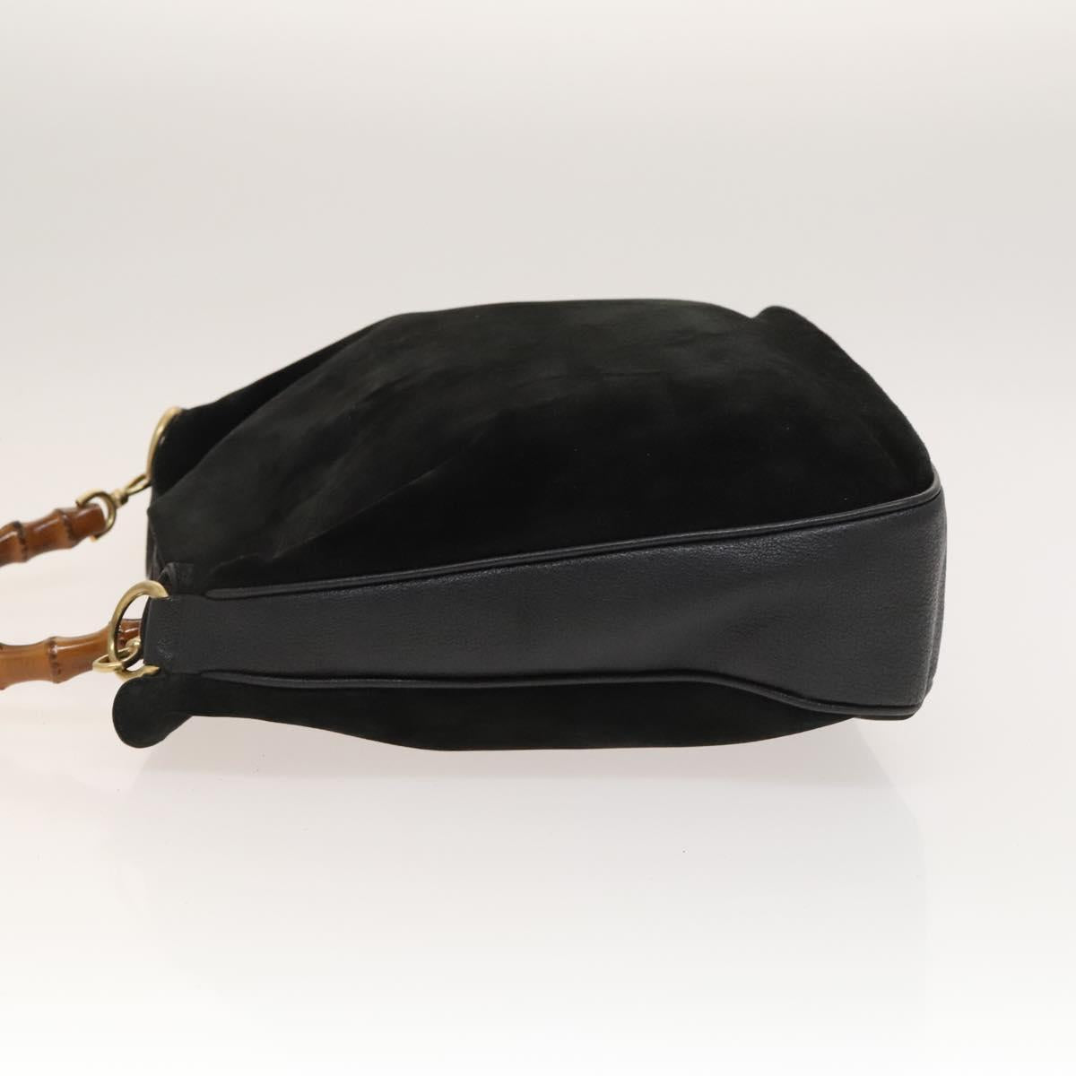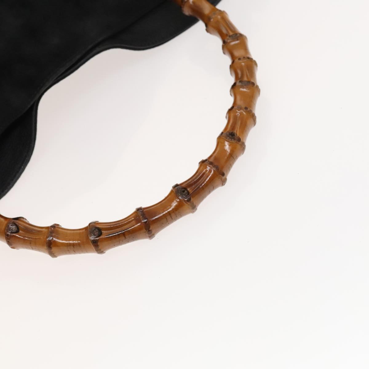 GUCCI Bamboo Hand Bag Suede 2way Black Gold 001 1998 1577 Auth ep9868