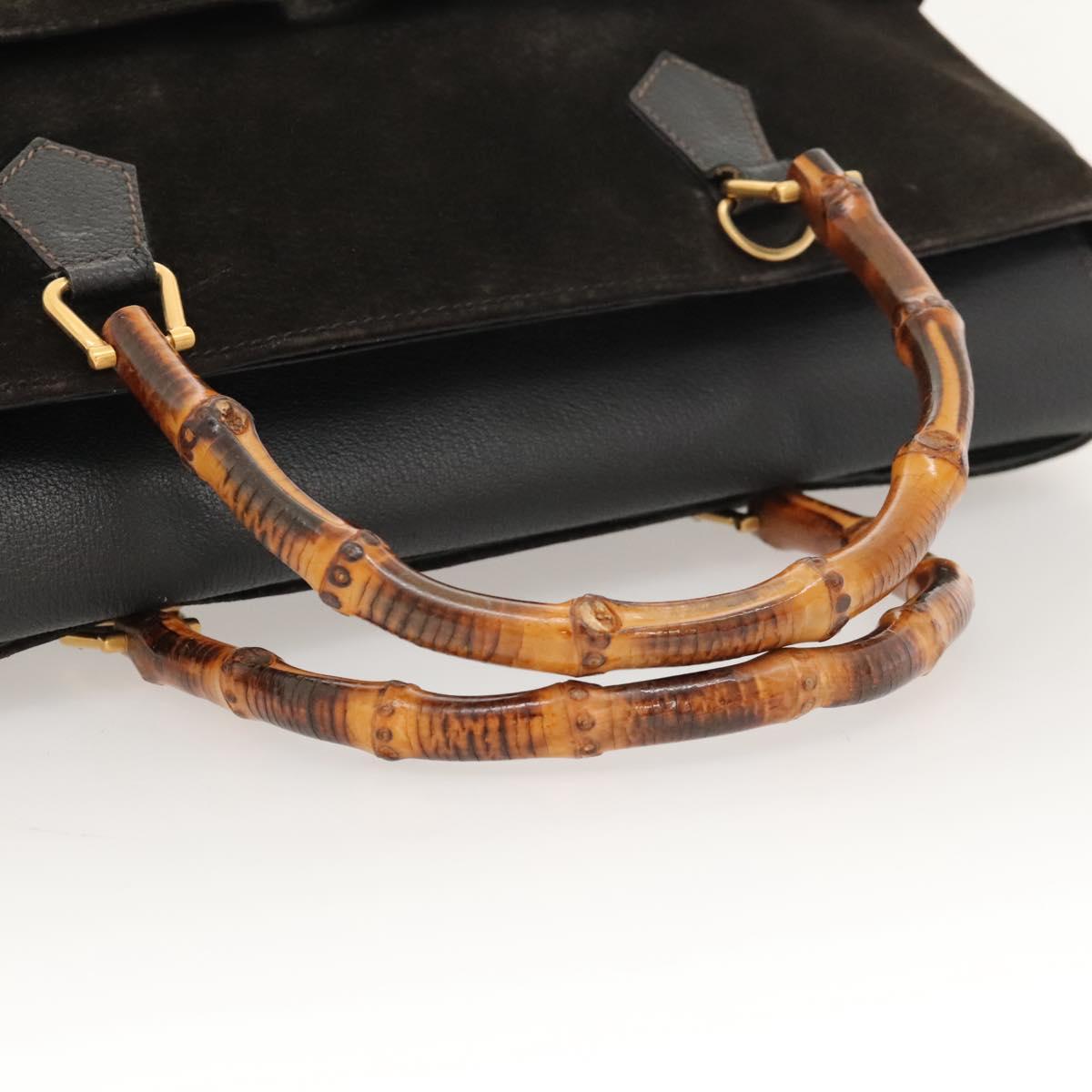 GUCCI Bamboo Hand Bag Suede 2way Black Gold 002 123 0322 Auth 117824