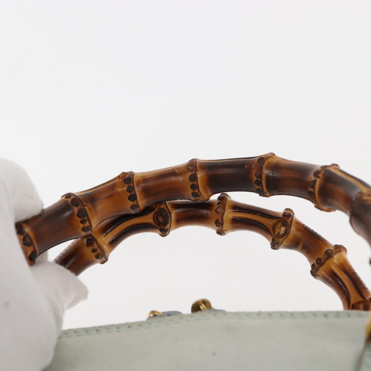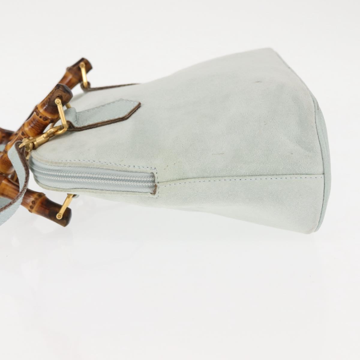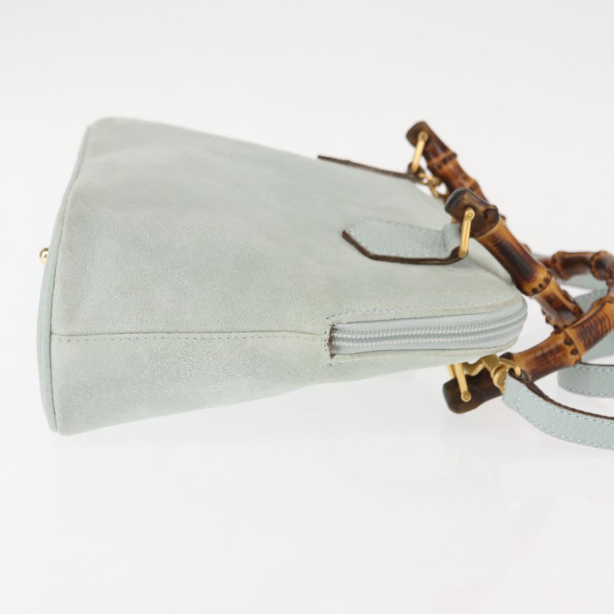 GUCCI Bamboo Hand Bag Suede 2way Light Blue Gold 000 1046 0290 Auth 145985