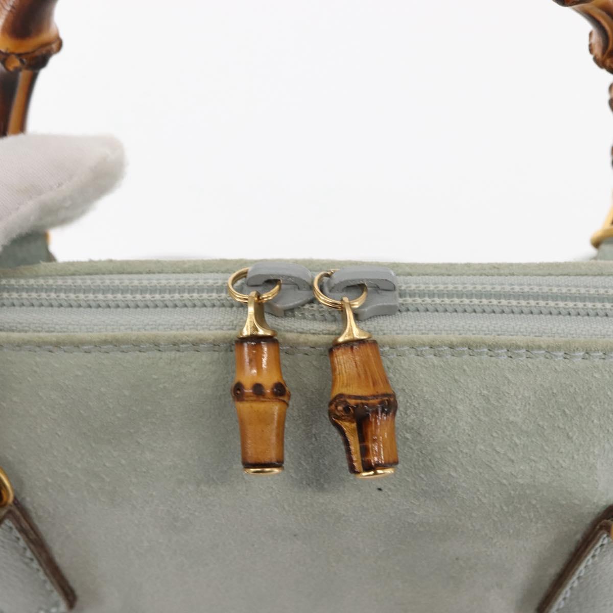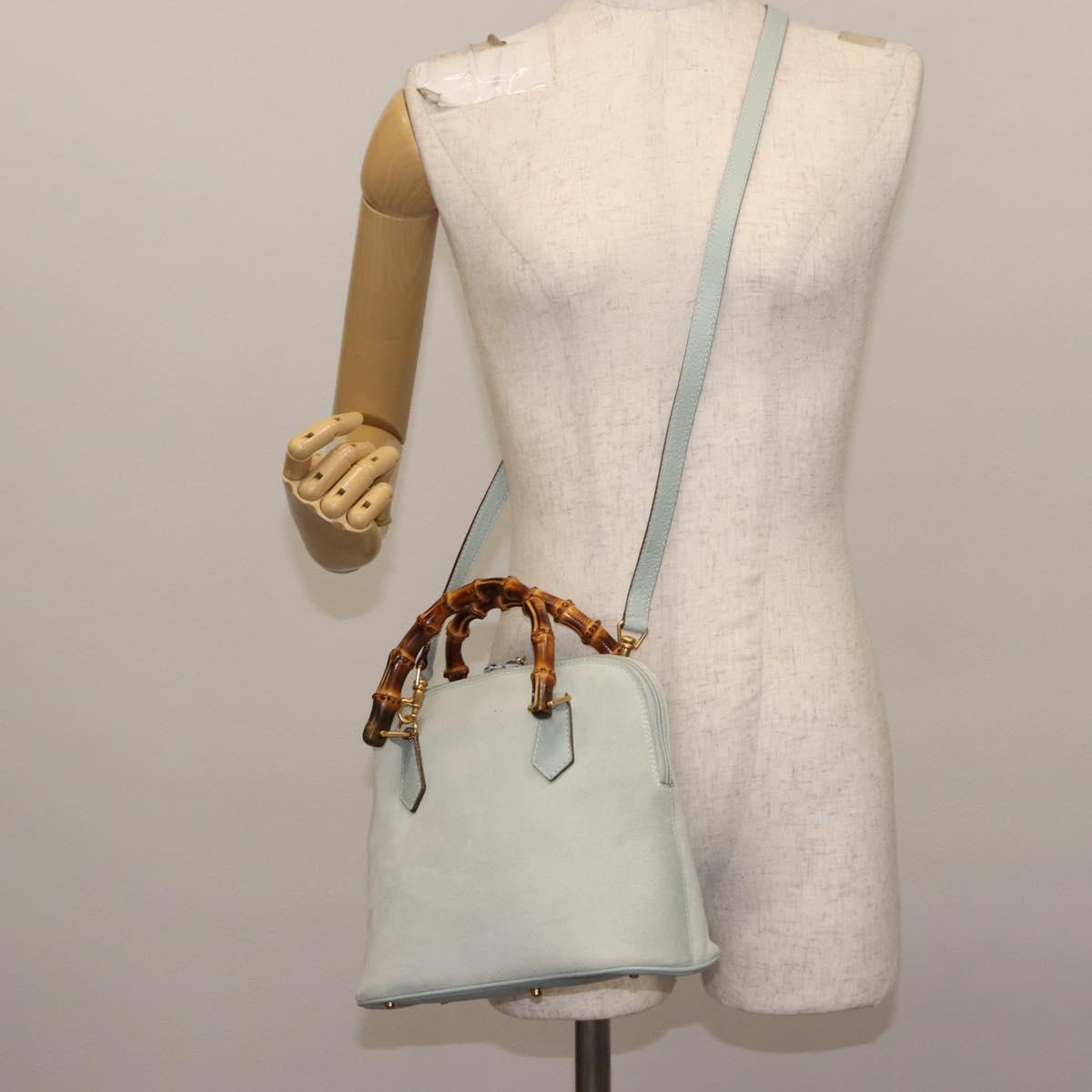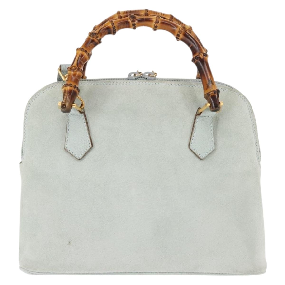 GUCCI Bamboo Hand Bag Suede 2way Light Blue Gold 000 1046 0290 Auth 145985