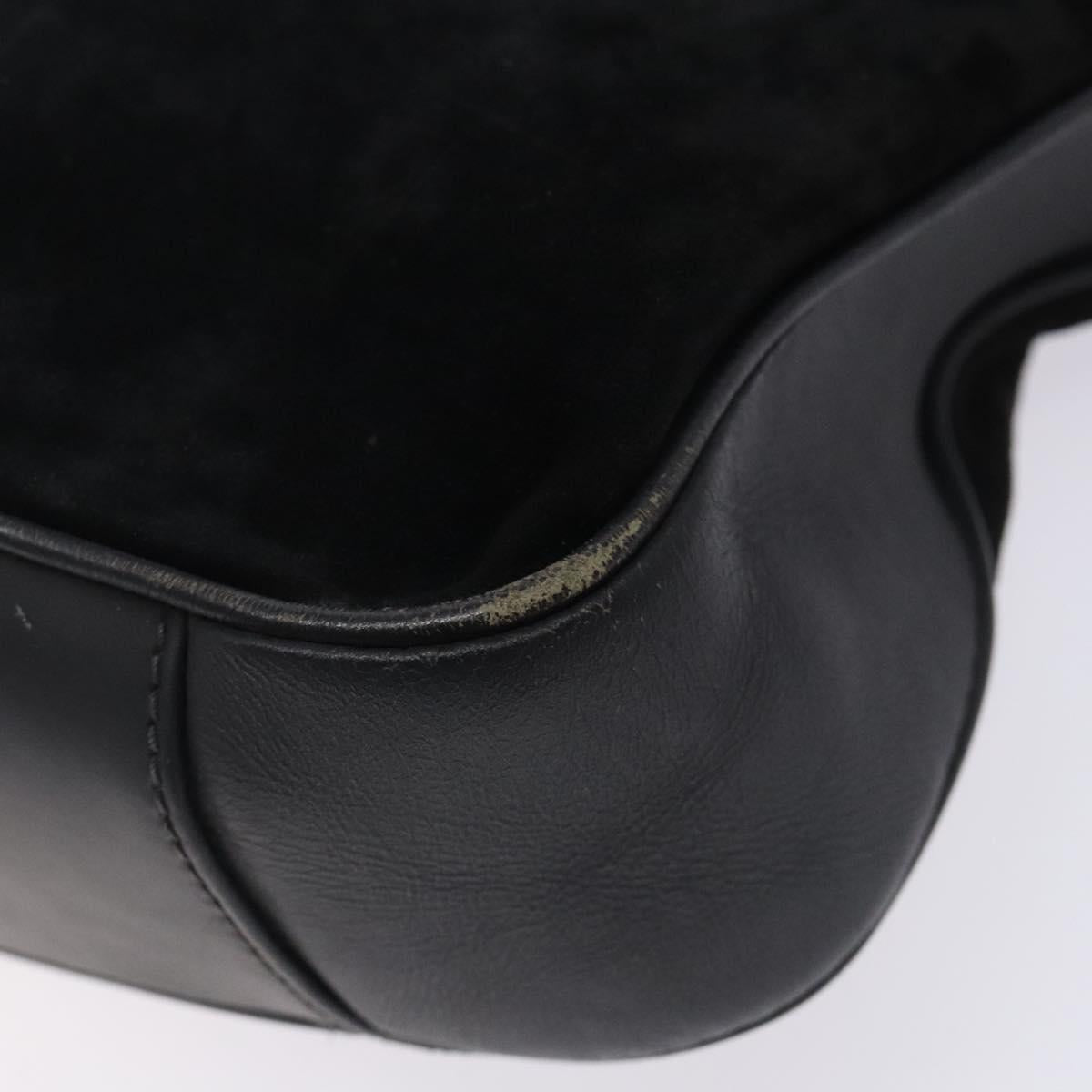GUCCI Bamboo Hand Bag Suede Black Gold 001 1638 Auth bs27560