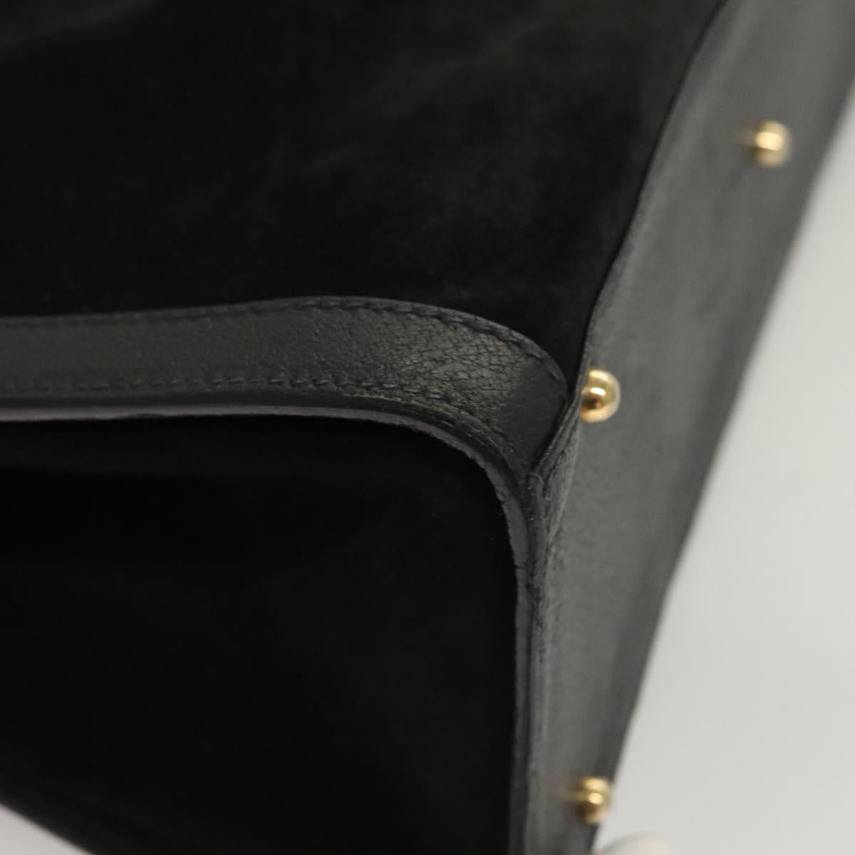 GUCCI Bamboo Hand Bag Suede Black Gold 002 0260 Auth ep8789