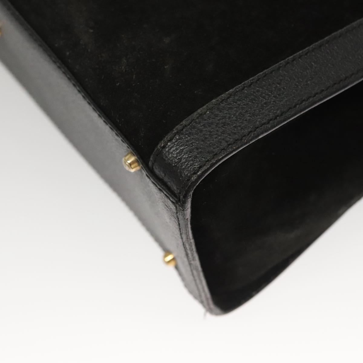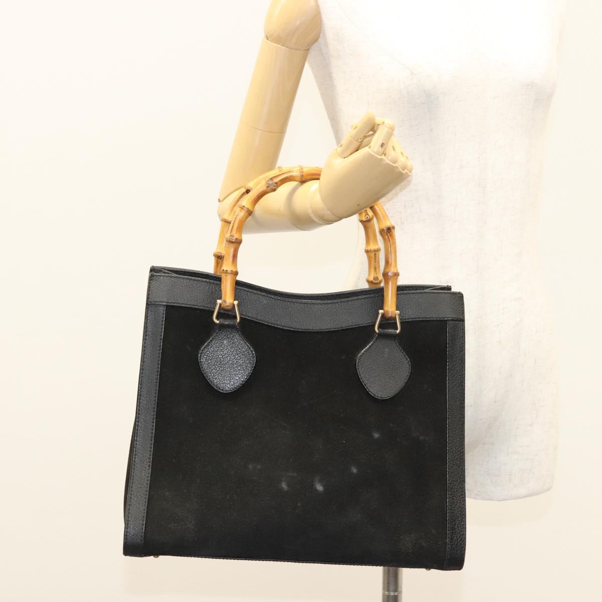 GUCCI Bamboo Hand Bag Suede Black Gold Auth ep9059