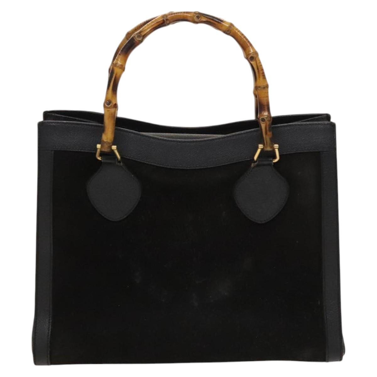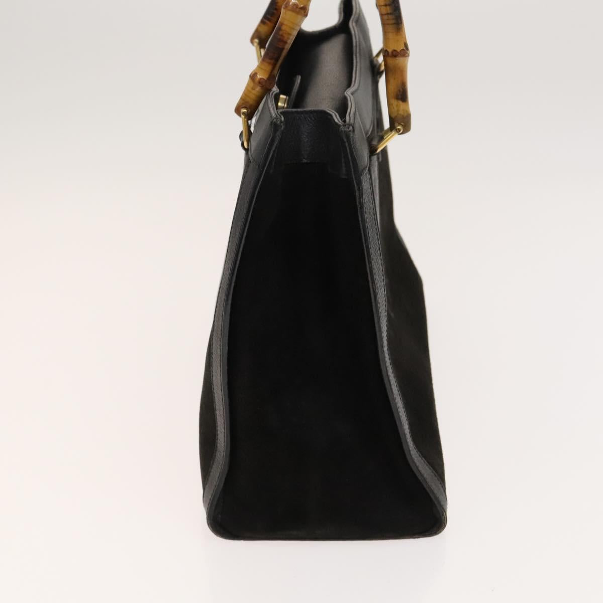 GUCCI Bamboo Hand Bag Suede Black Gold Auth mr1297