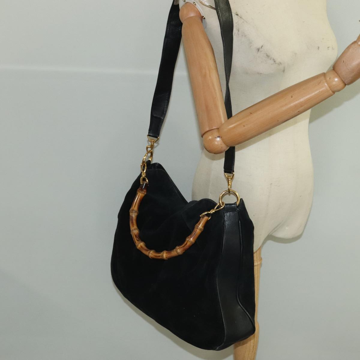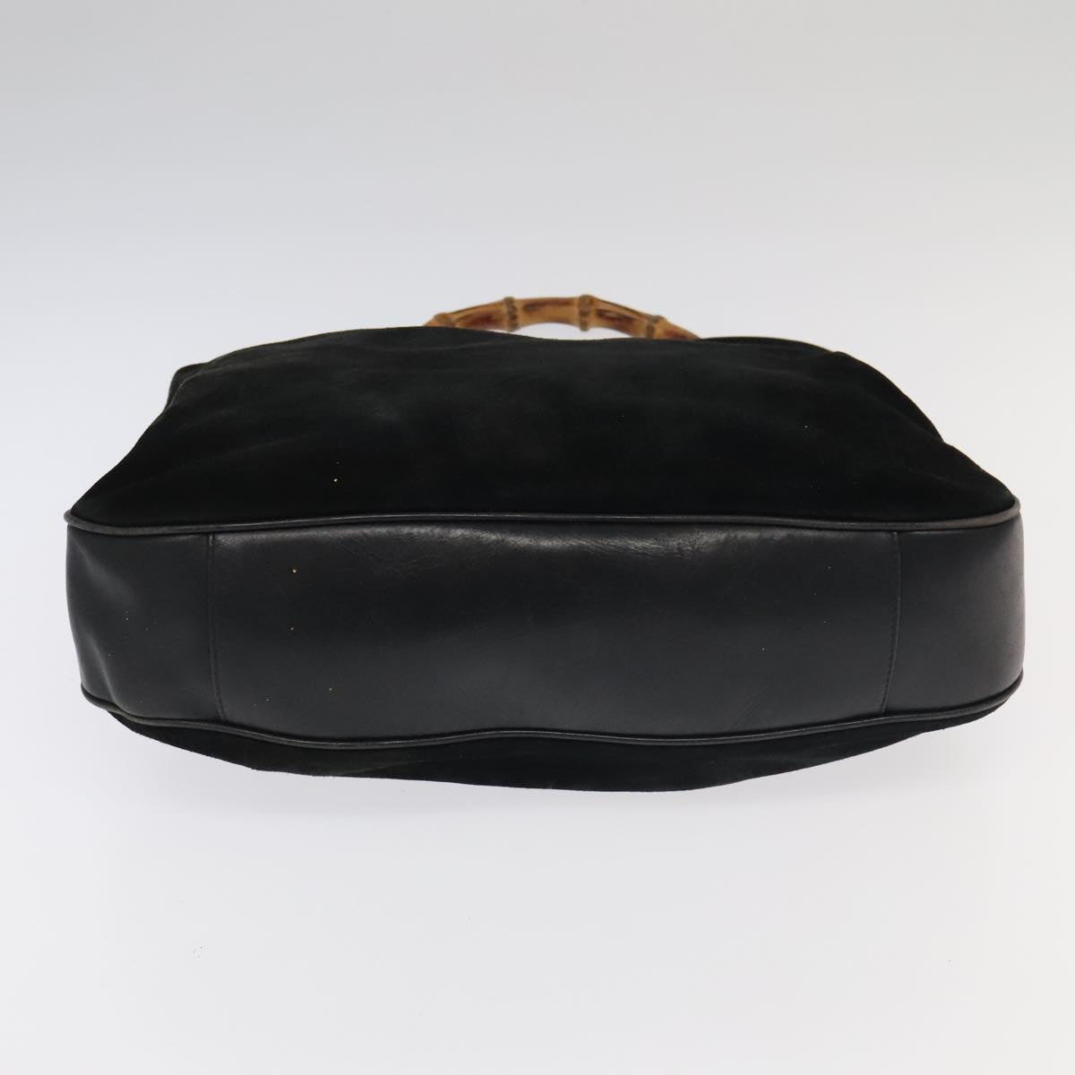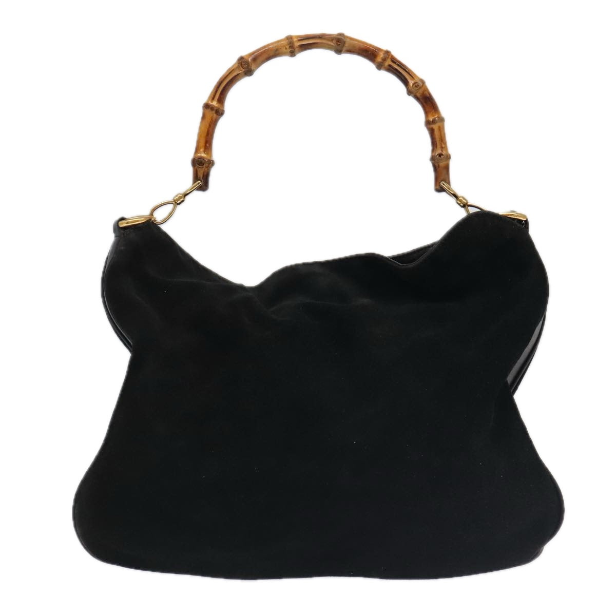 GUCCI Bamboo Hand Bag Suede Leather 2way Black Gold 001 3444 1638 Auth fm4162