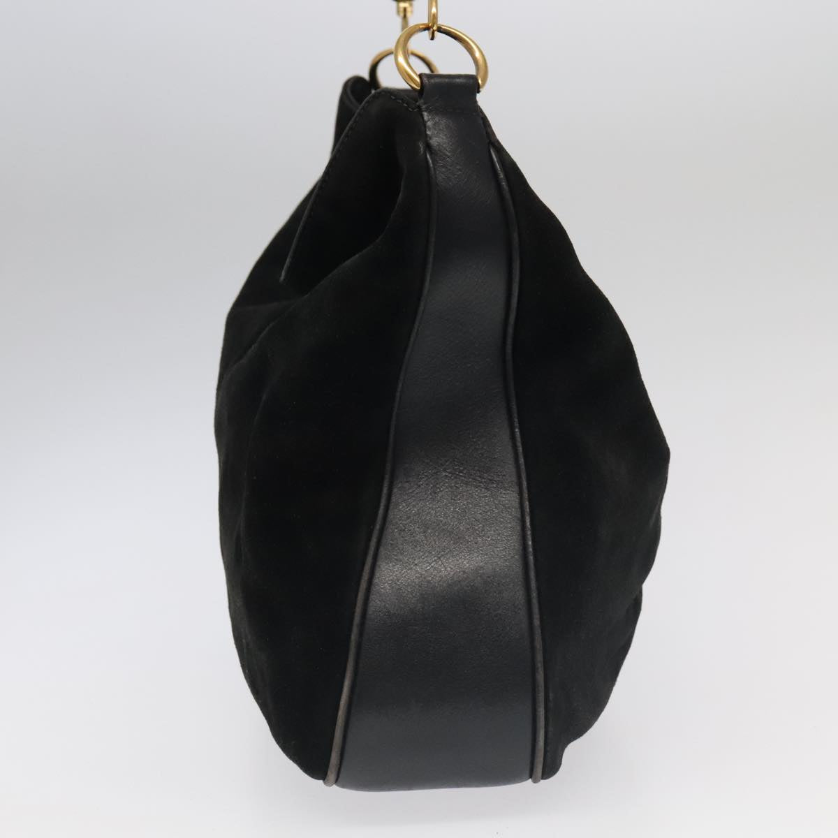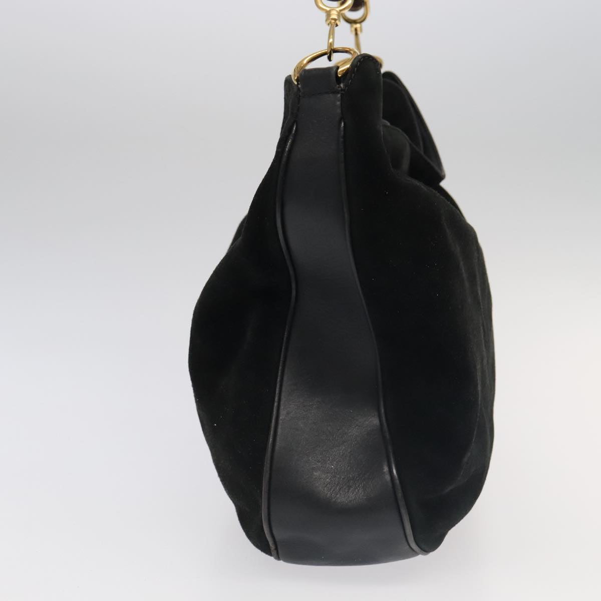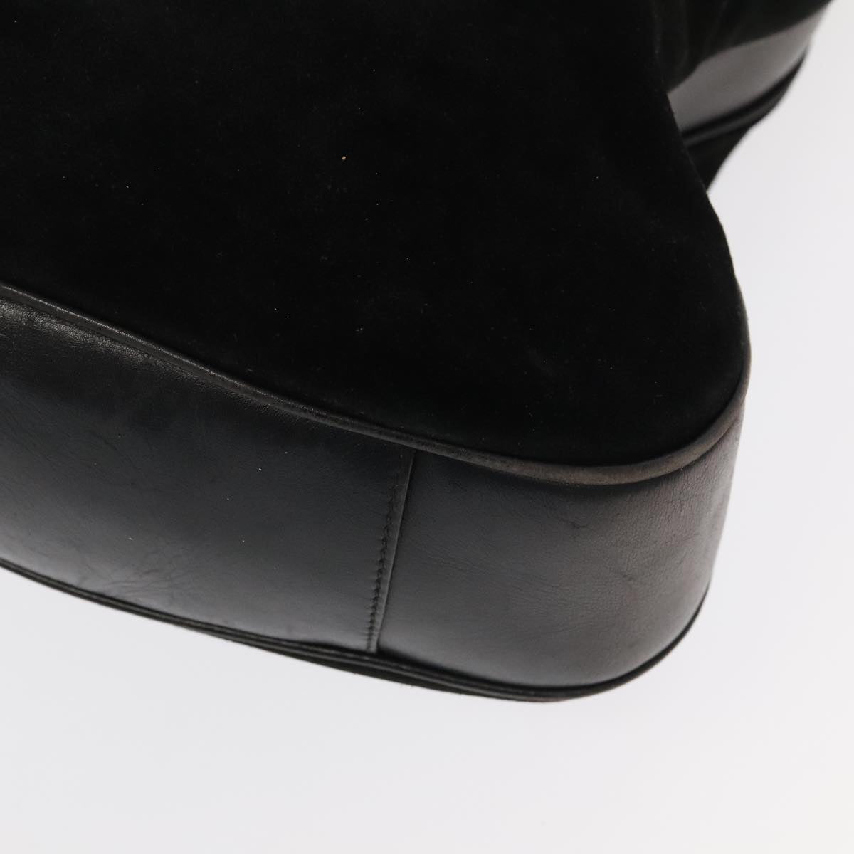 GUCCI Bamboo Hand Bag Suede Leather 2way Black Gold 001 3444 1638 Auth fm4162
