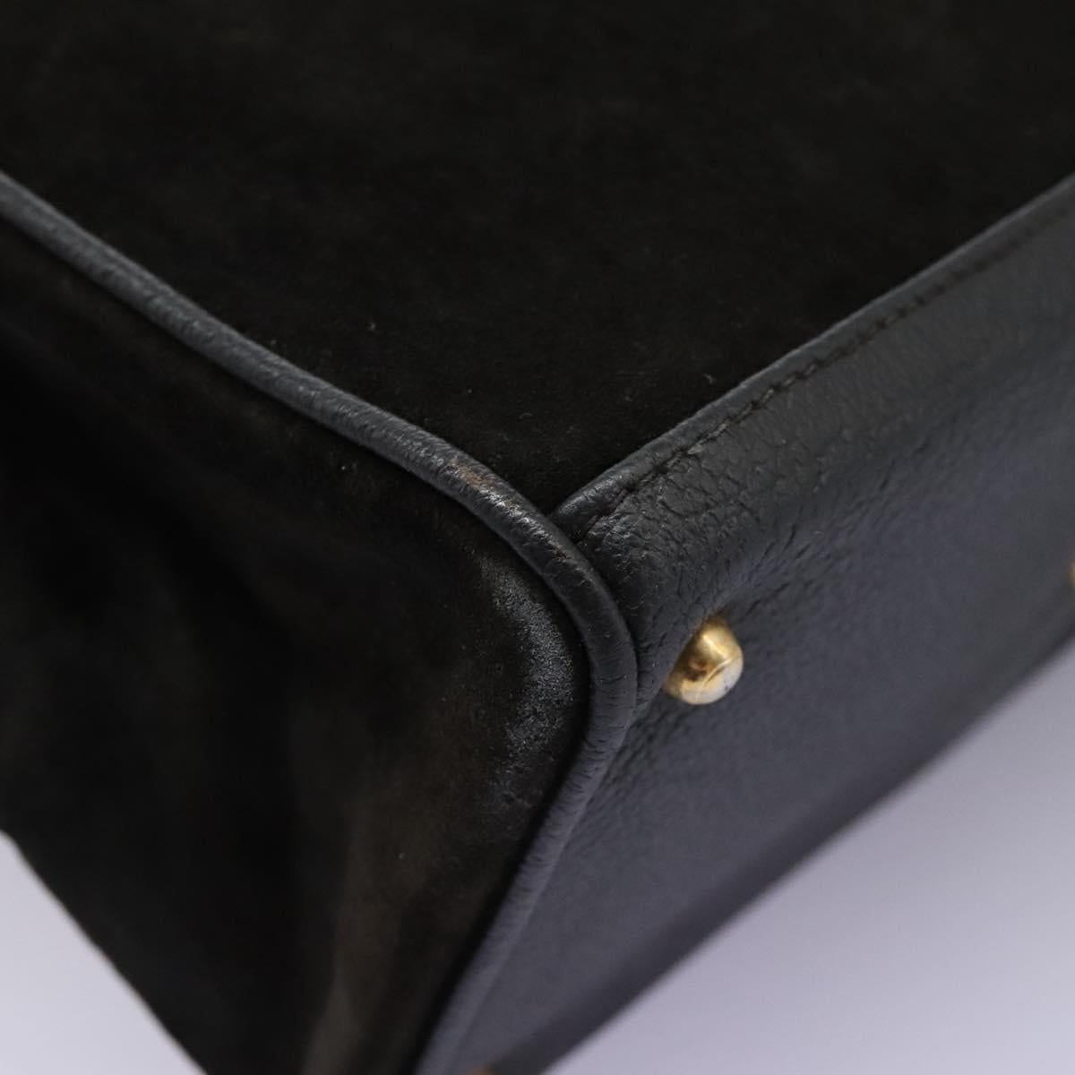 GUCCI Bamboo Hand Bag Suede Leather Black Gold 000 122 0316 Auth nb100