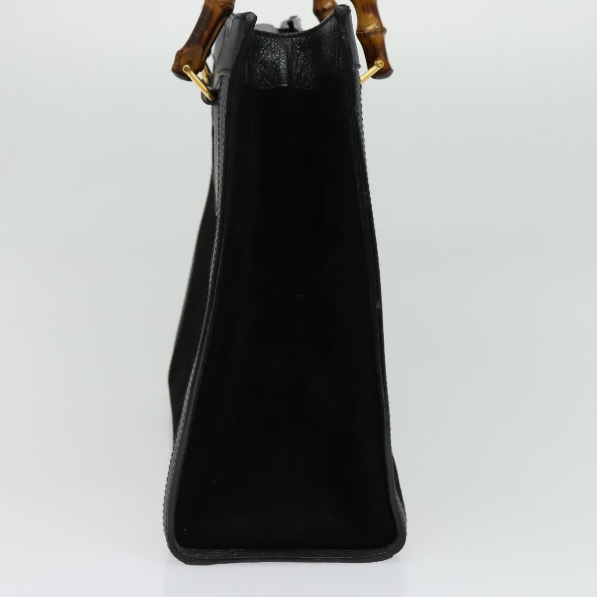GUCCI Bamboo Hand Bag Suede Leather Black Gold 002 1186 0260 Auth ep10587