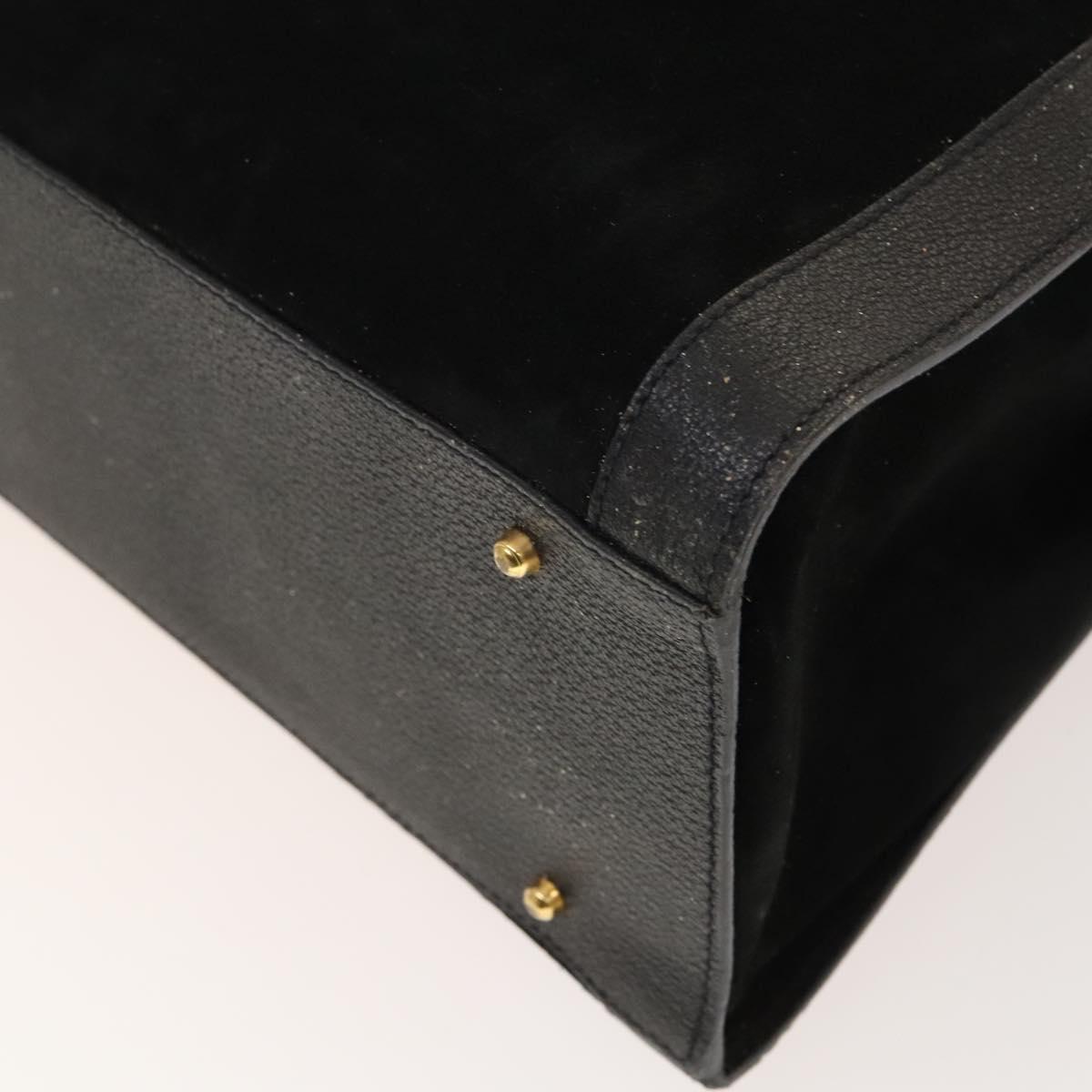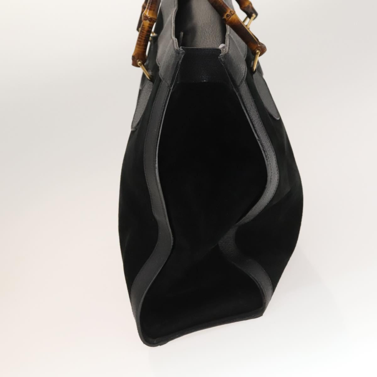 GUCCI Bamboo Hand Bag Suede Leather Black Gold Auth 131557