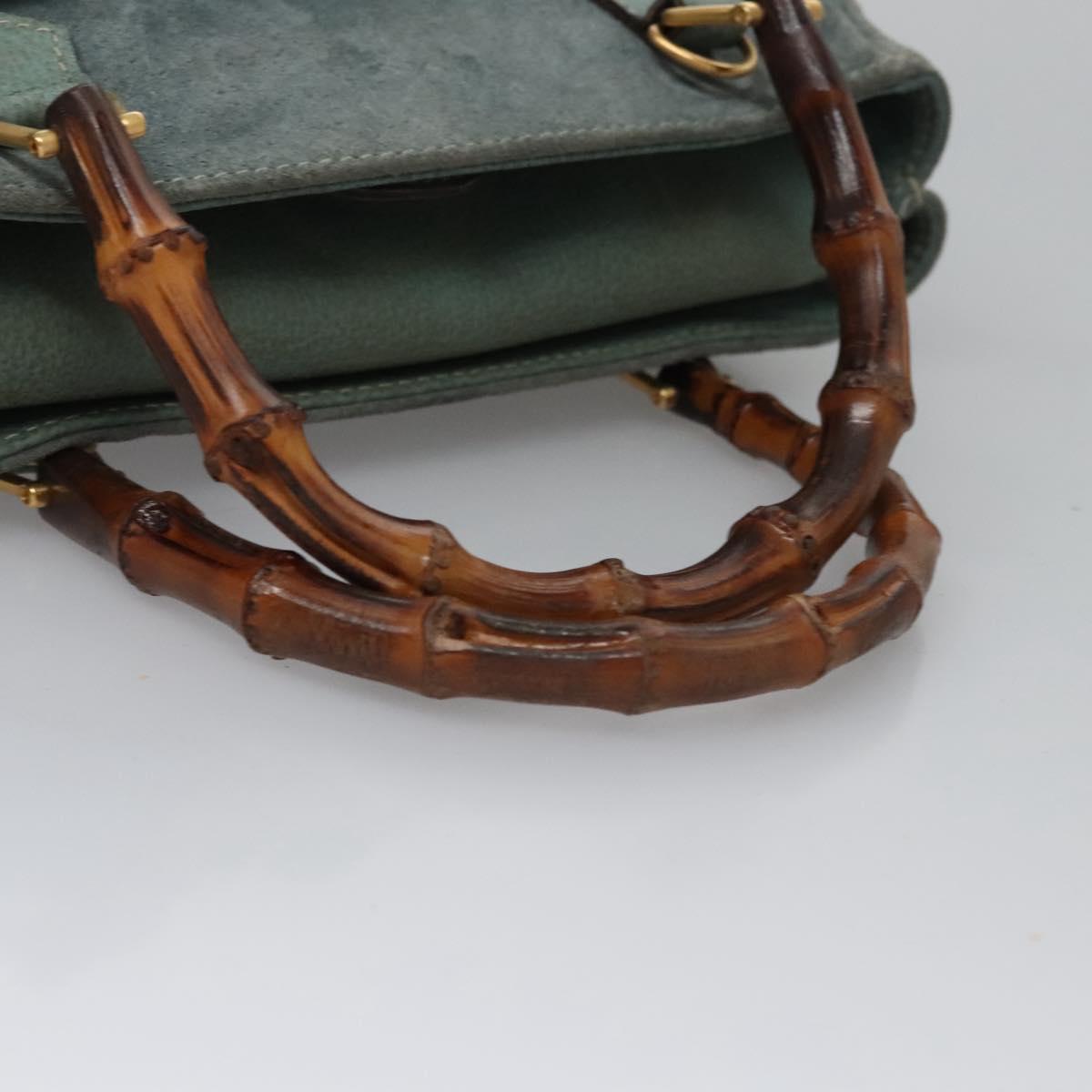 GUCCI Bamboo Hand Bag Suede Leather Gray Gold 000 123 0316 Auth EC460