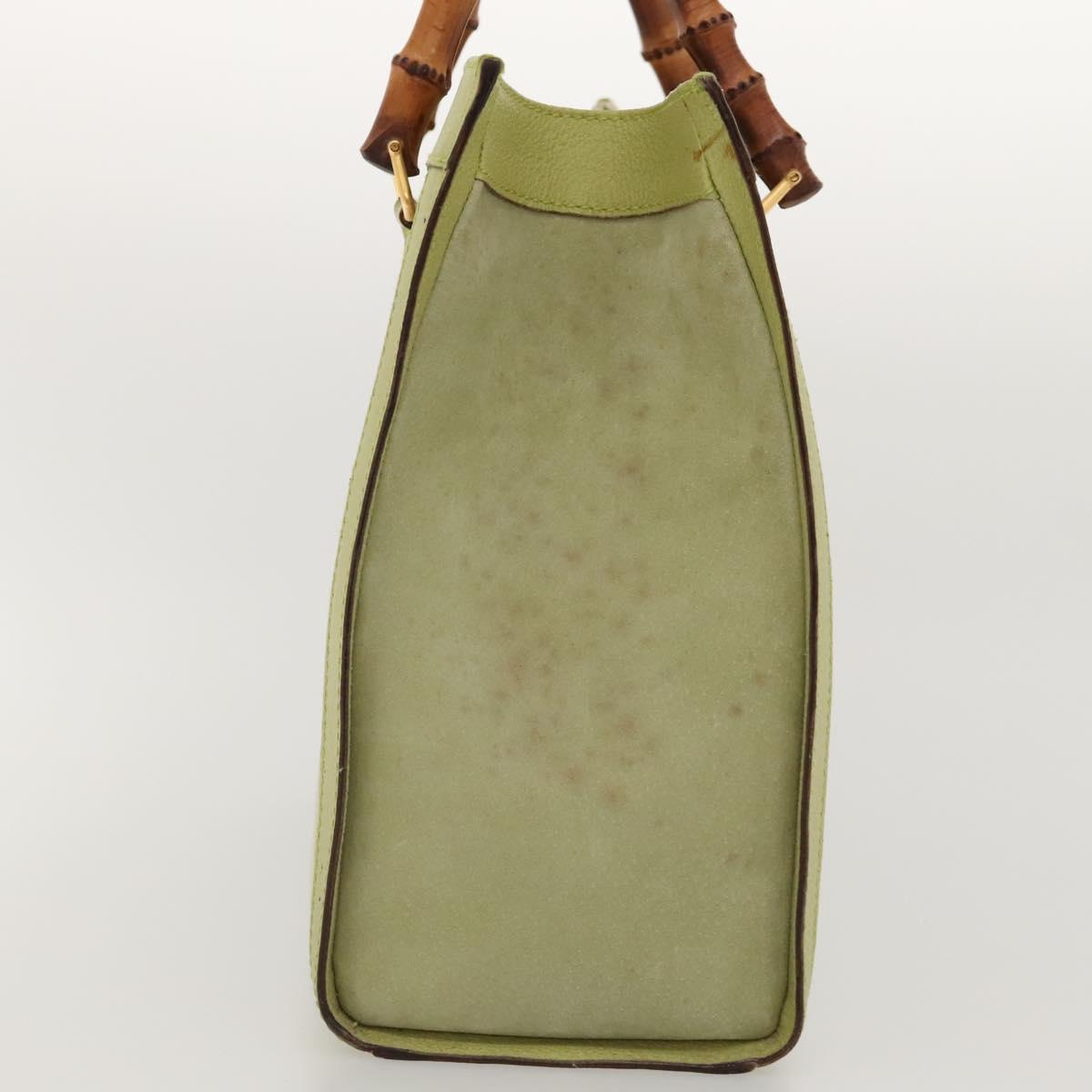 GUCCI Bamboo Hand Bag Suede Leather LIme Green Gold 002 123 0260 Auth KD262