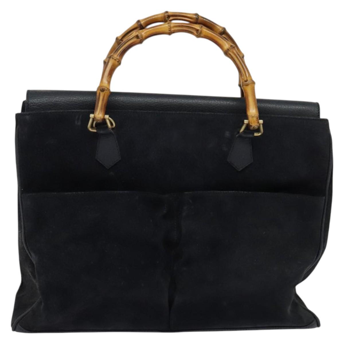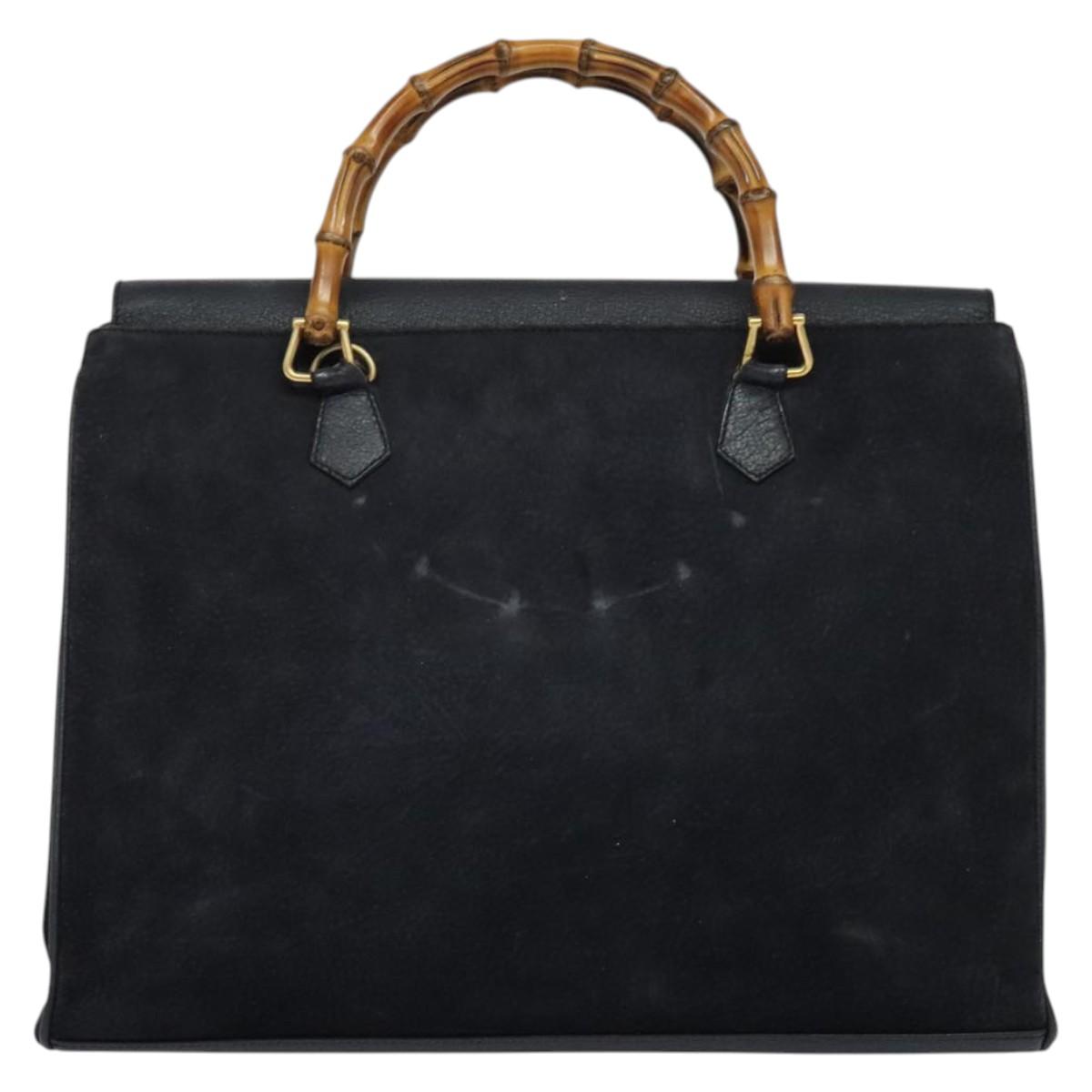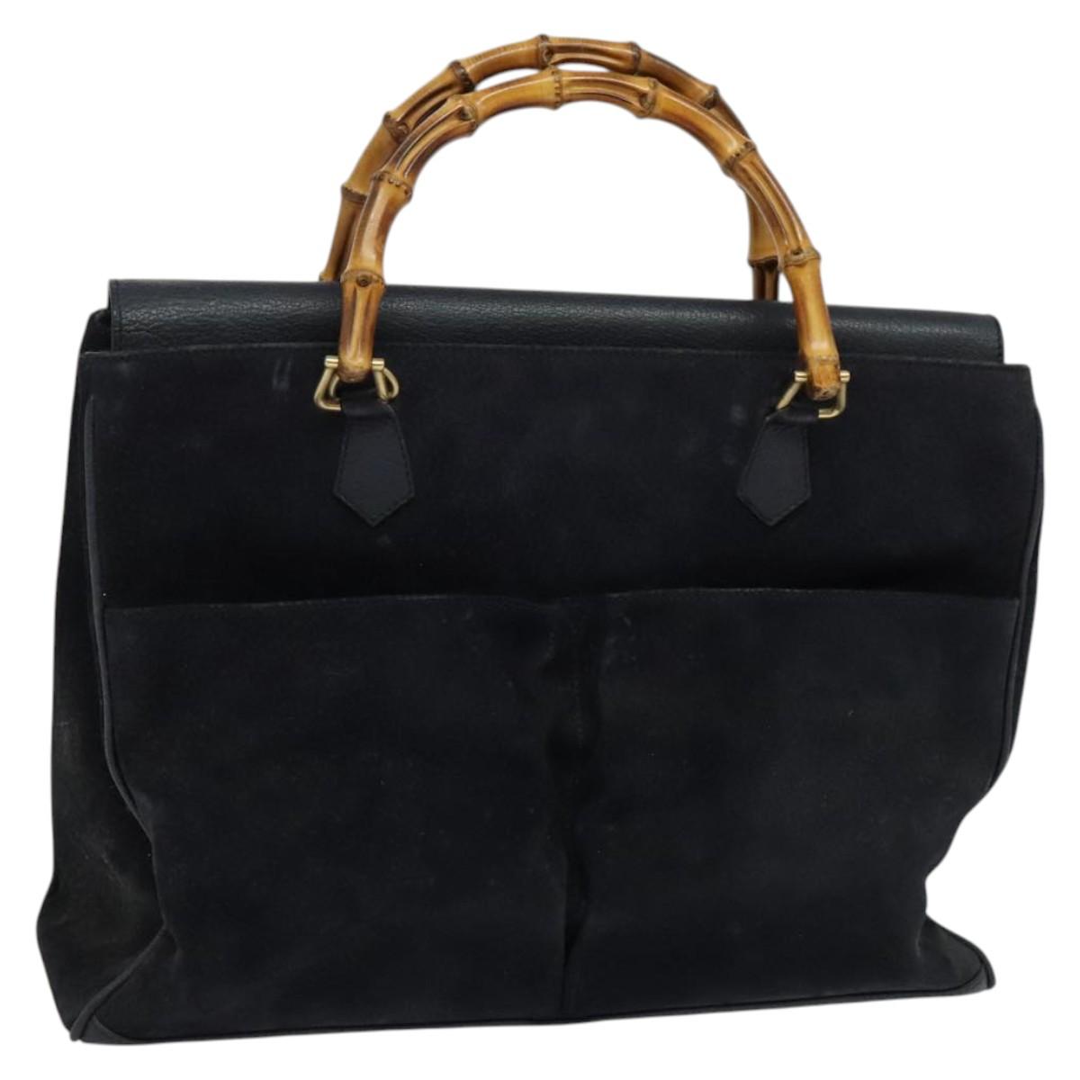 GUCCI Bamboo Hand Bag Suede Navy Gold 002 2855 0322 0 Auth ep10056