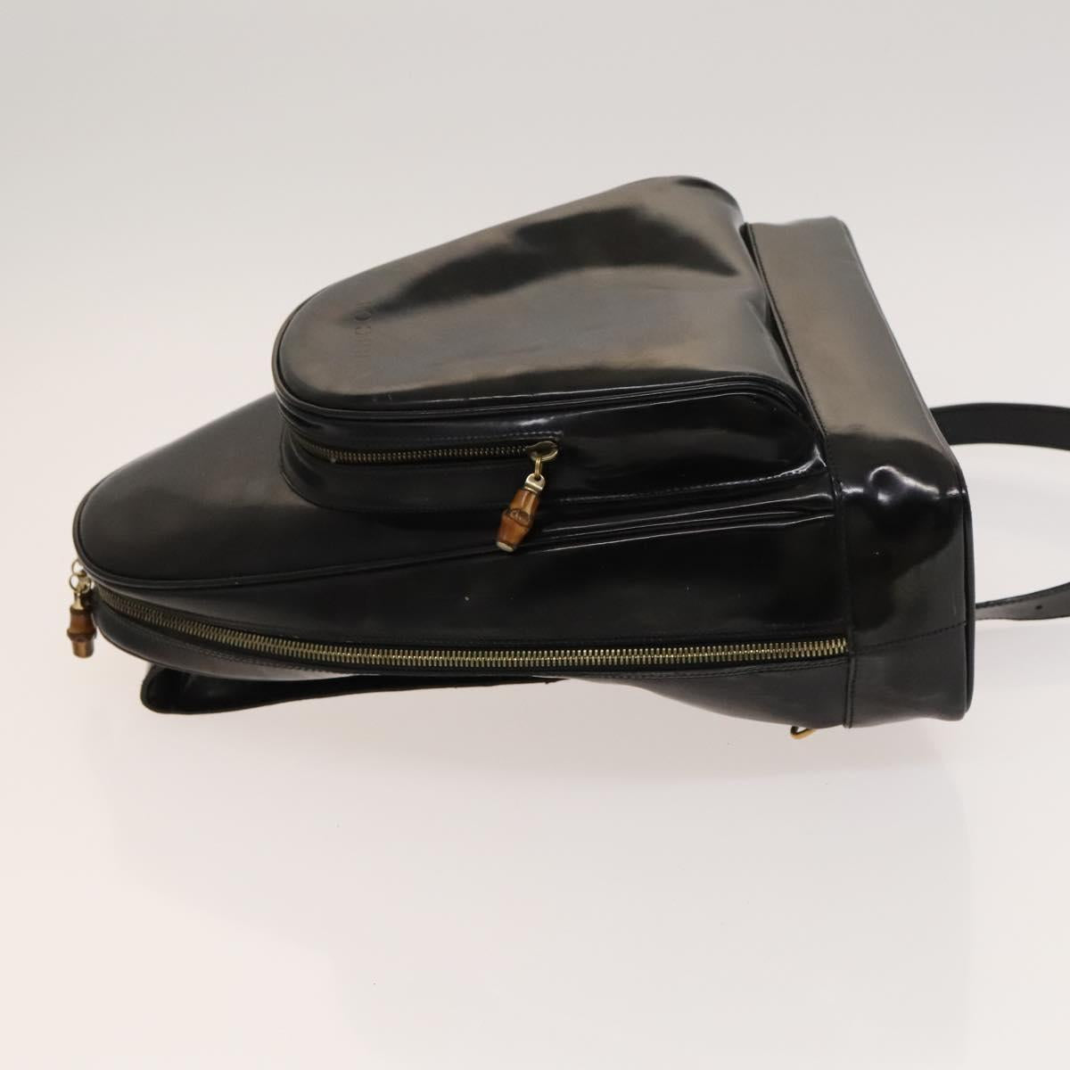 GUCCI Bamboo Shoulder Bag Enamel Black 003 2113 0127 Auth bs25525