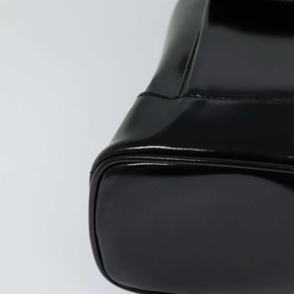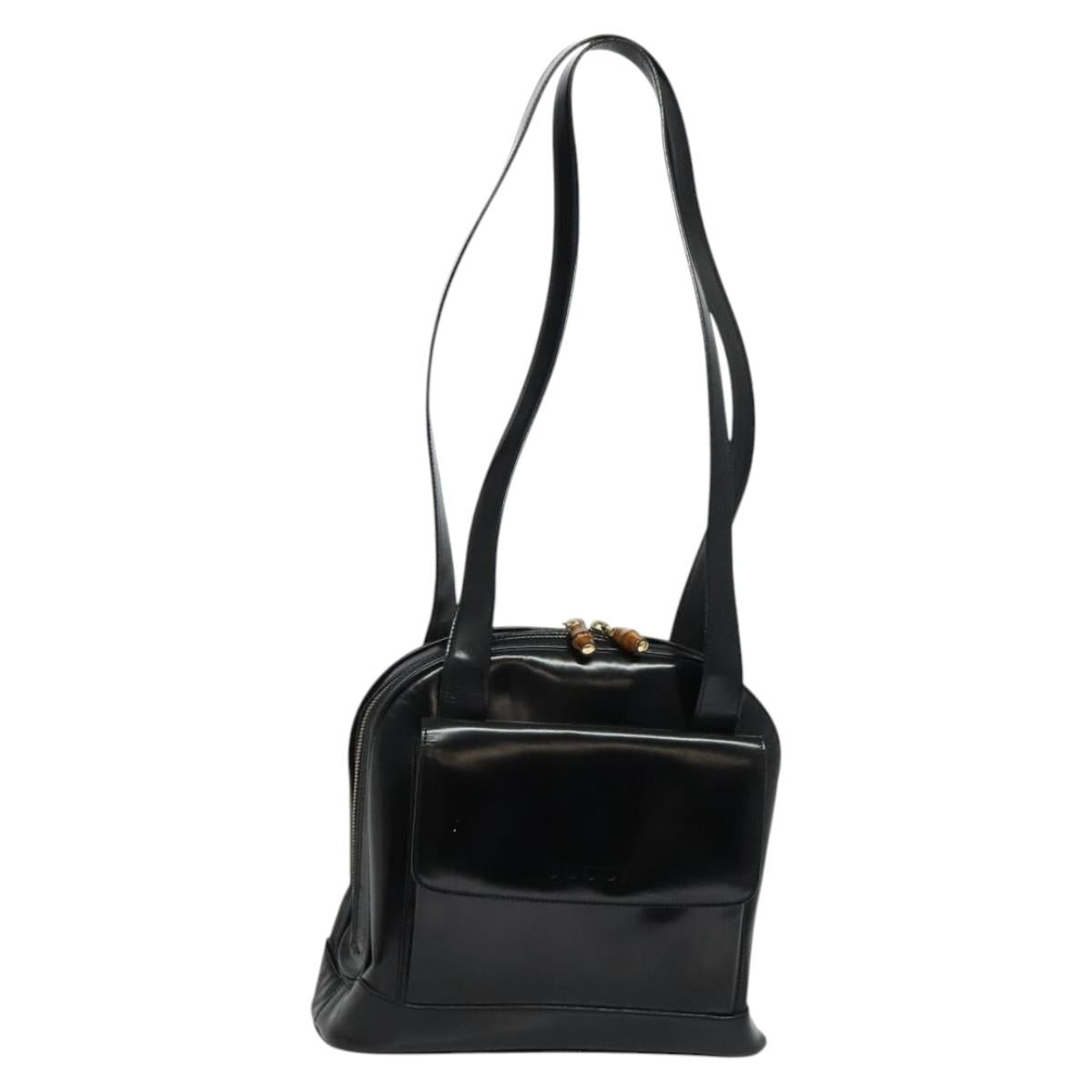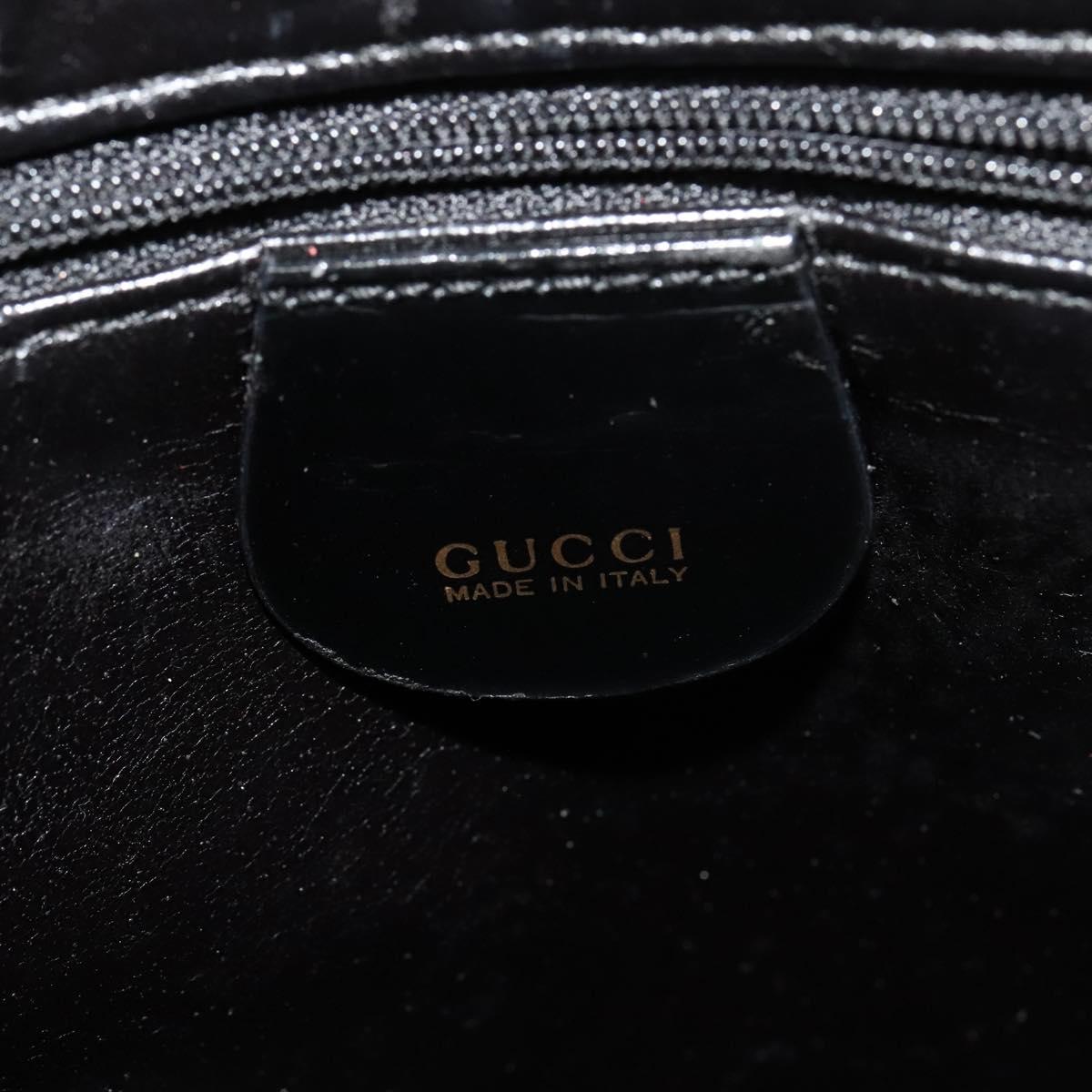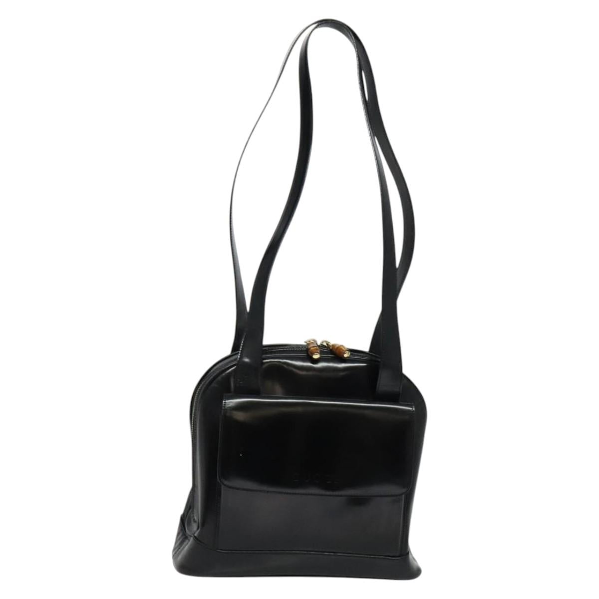 GUCCI Bamboo Shoulder Bag Enamel Black Gold Auth bs26920