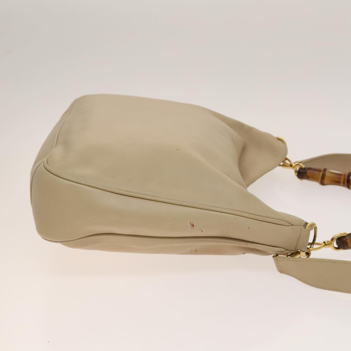 GUCCI Bamboo Shoulder Bag Leather 2way Beige Gold 001 2113 1577 Auth 138340