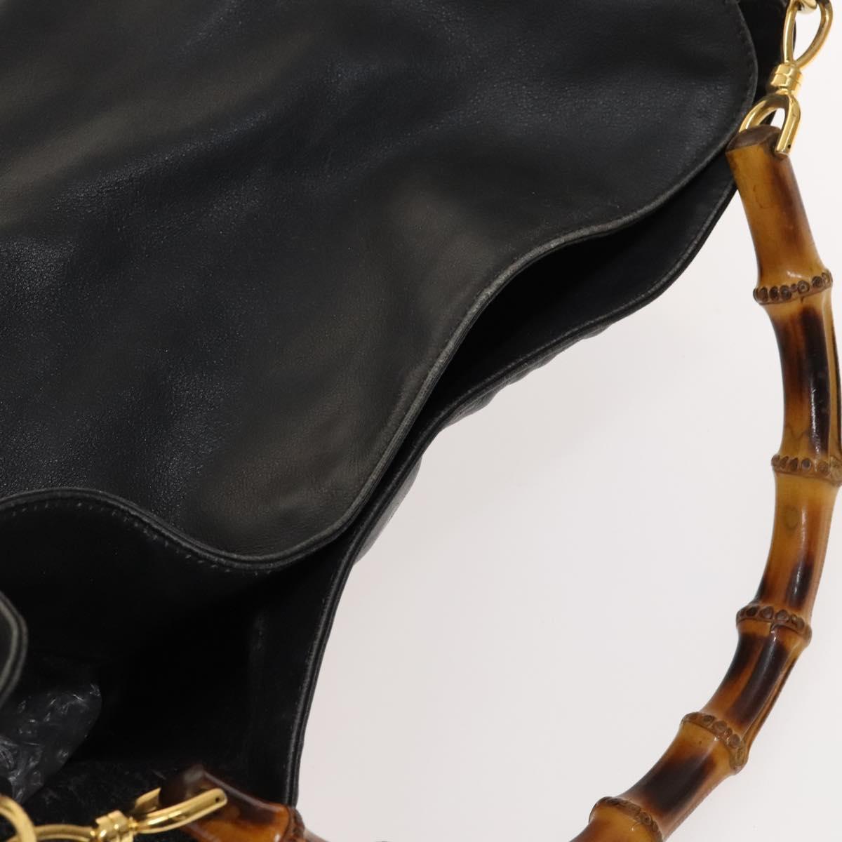 GUCCI Bamboo Shoulder Bag Leather 2way Black Gold 001 1014 1577 0 Auth 123171