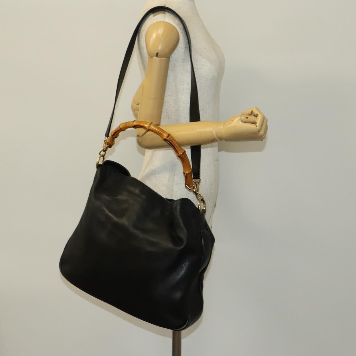 GUCCI Bamboo Shoulder Bag Leather 2way Black Gold 001 1577 Auth 138325