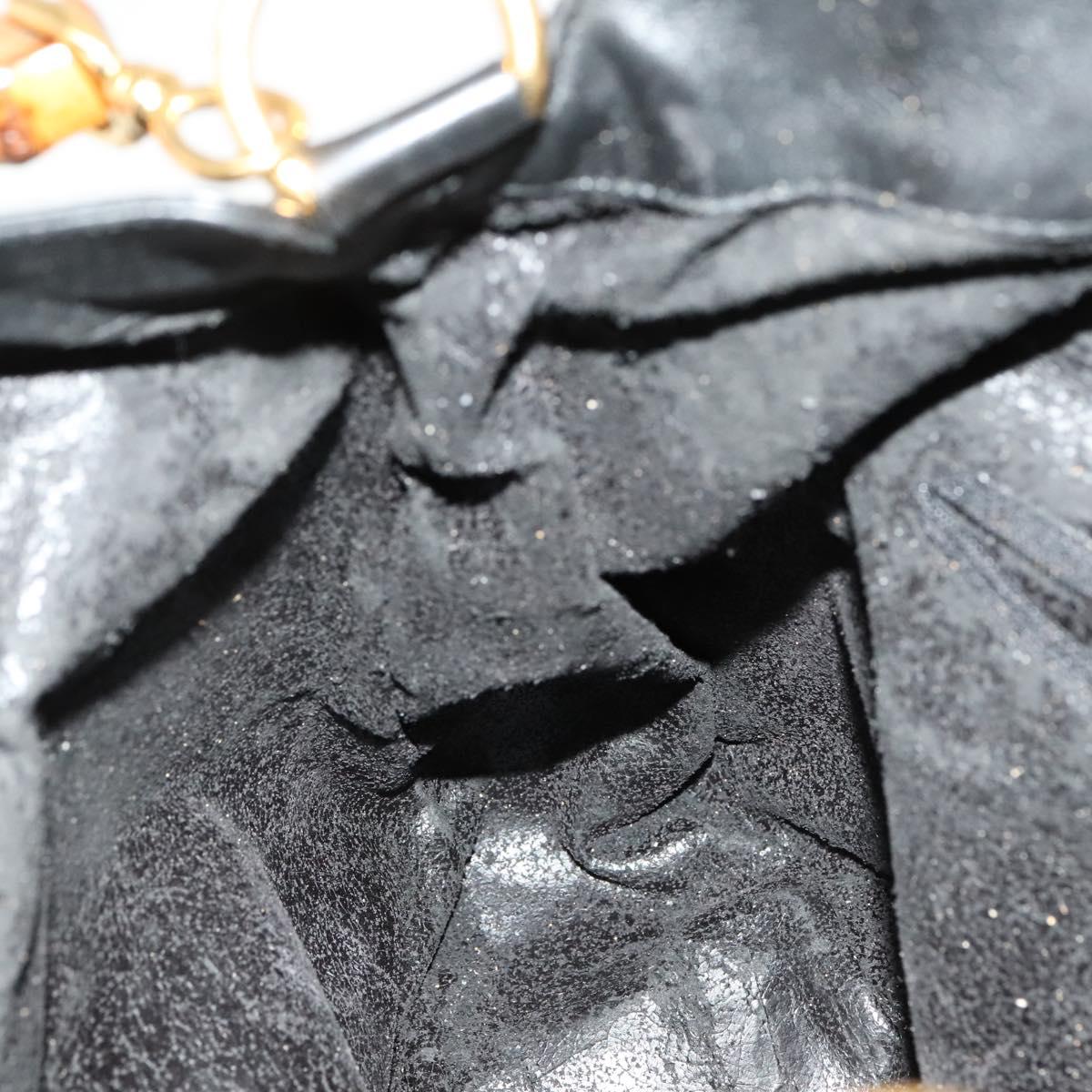 GUCCI Bamboo Shoulder Bag Leather 2way Black Gold 001 1577 Auth MX325
