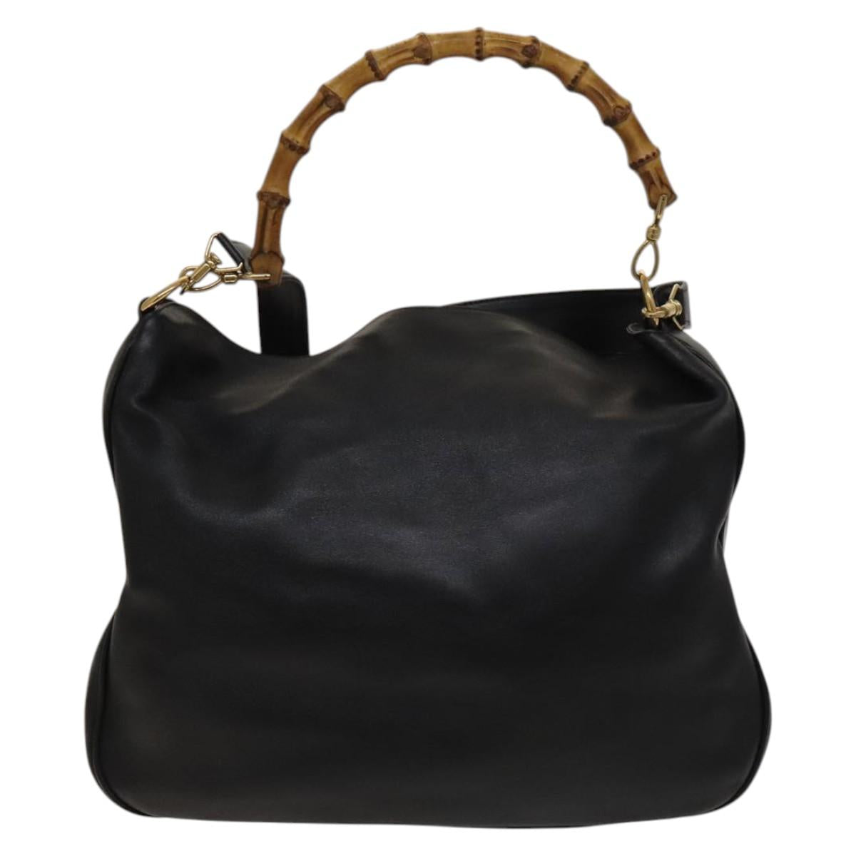 GUCCI Bamboo Shoulder Bag Leather 2way Black Gold 001 1781 1577 Auth 138302