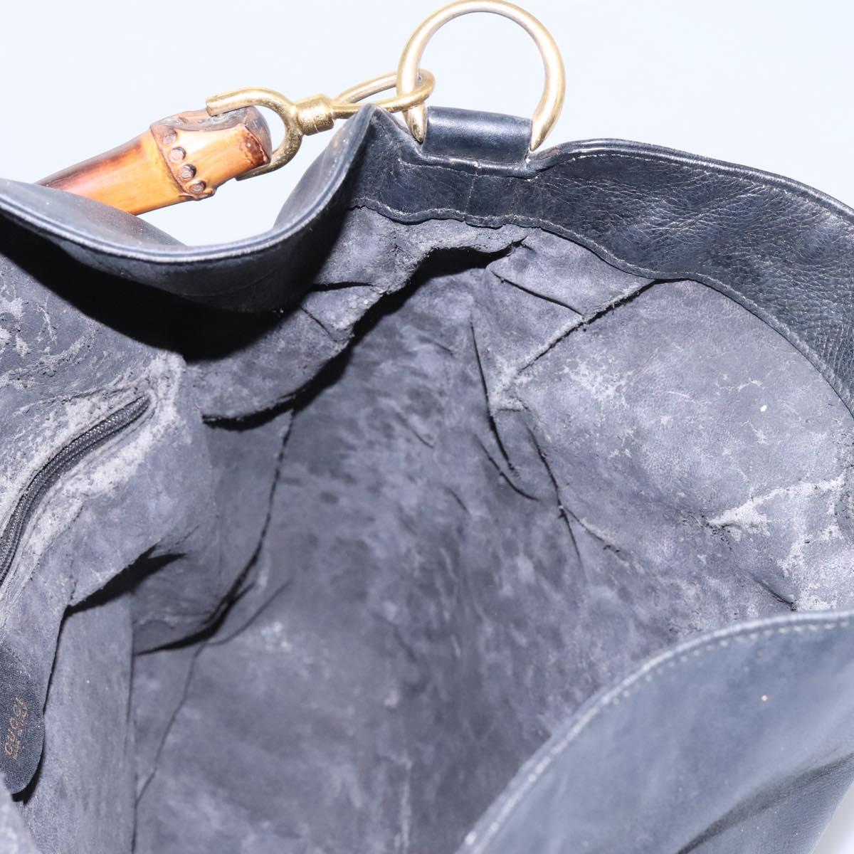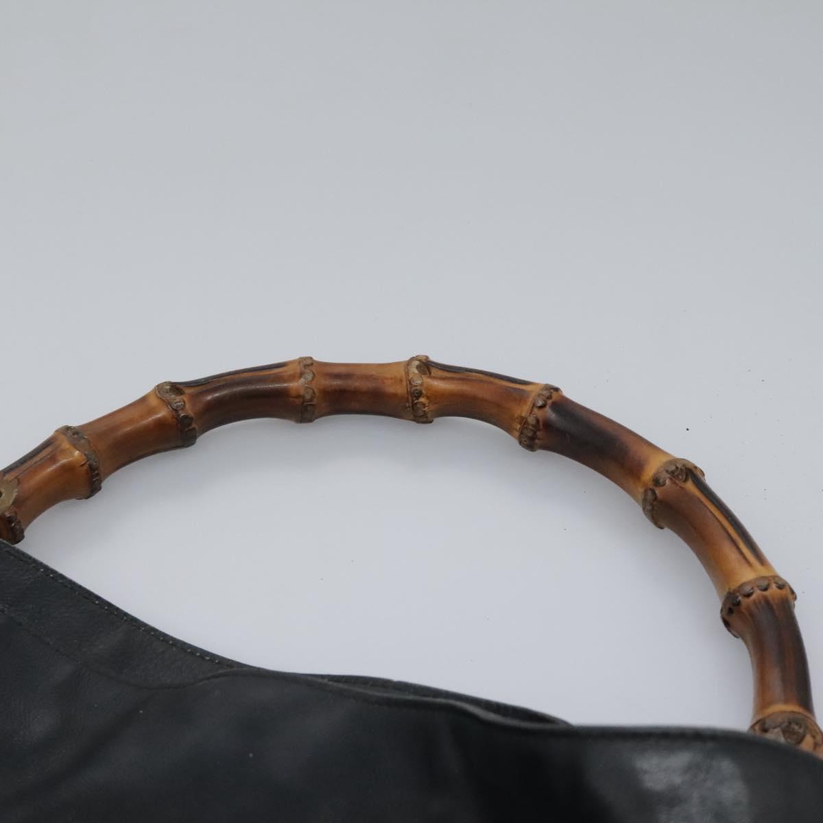 GUCCI Bamboo Shoulder Bag Leather 2way Black Gold 001 3754 1577 Auth 116022