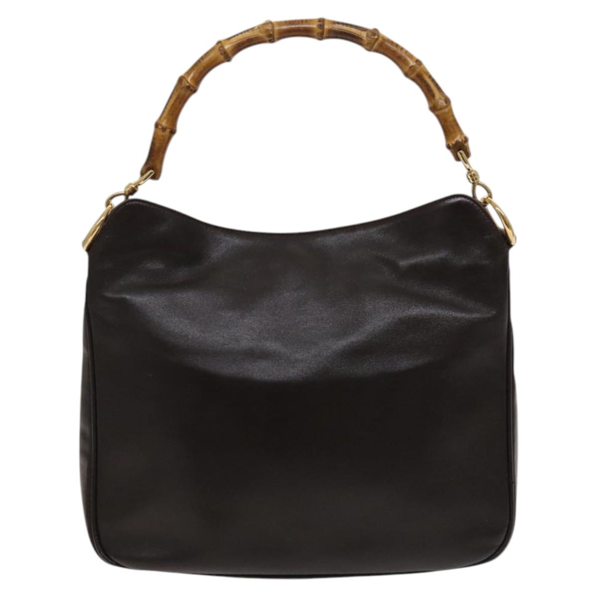 GUCCI Bamboo Shoulder Bag Leather 2way Brown Gold 001 3444 1638 Auth MX324