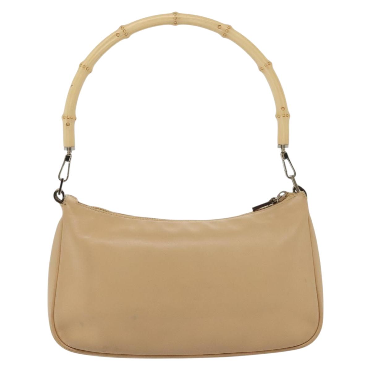 GUCCI Bamboo Shoulder Bag Leather Beige Silver 001 3865 Auth 137980