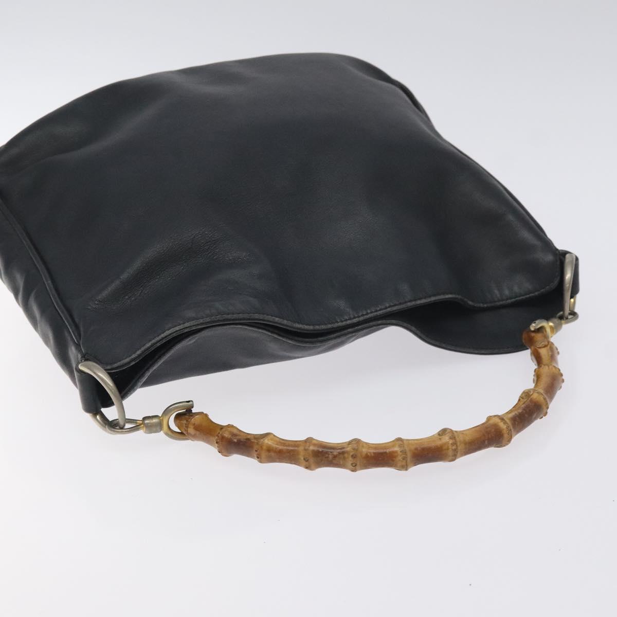 GUCCI Bamboo Shoulder Bag Leather Black Gold 001 1781 1638 Auth bs26983