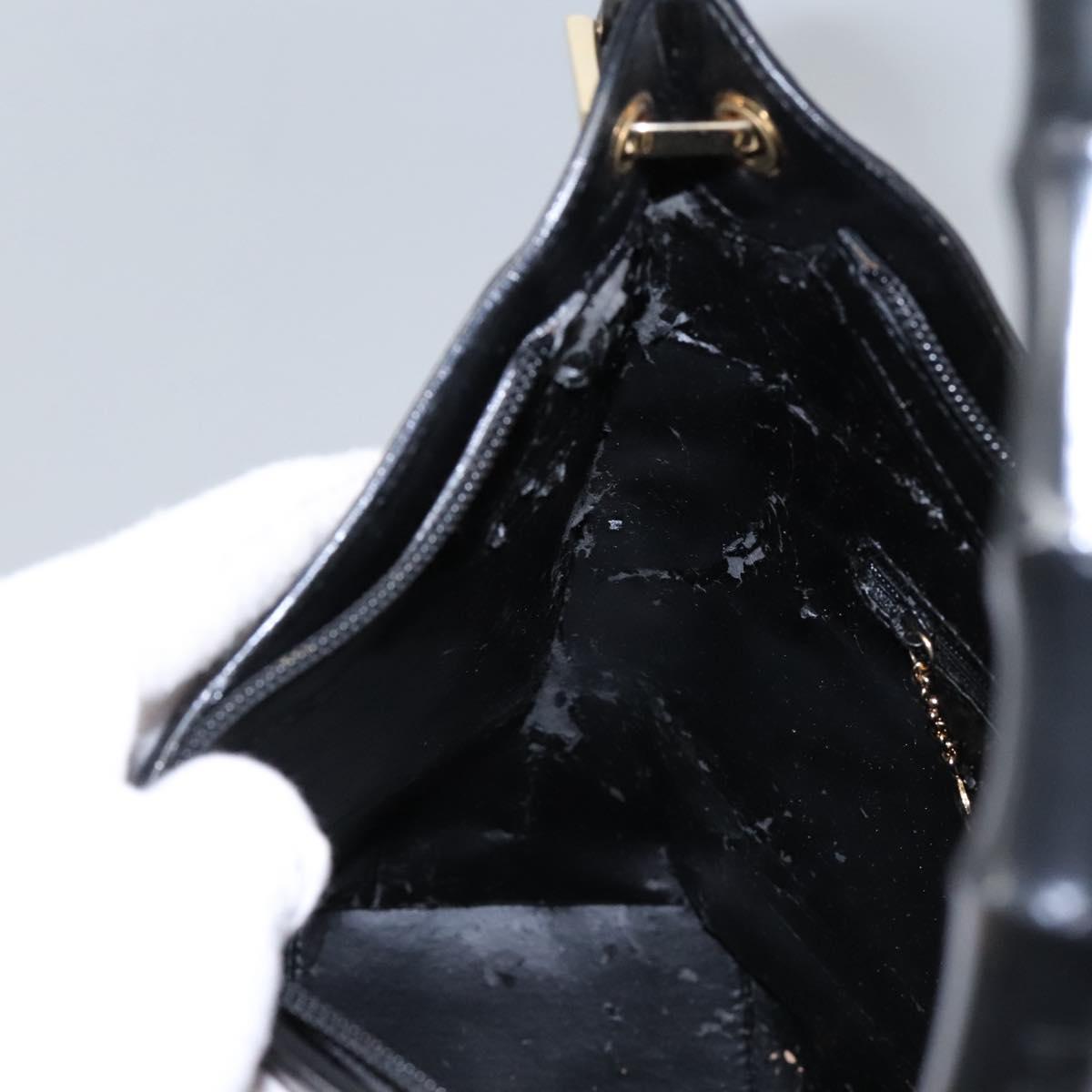 GUCCI Bamboo Shoulder Bag Leather Black Gold 001 3006 Auth yk17653