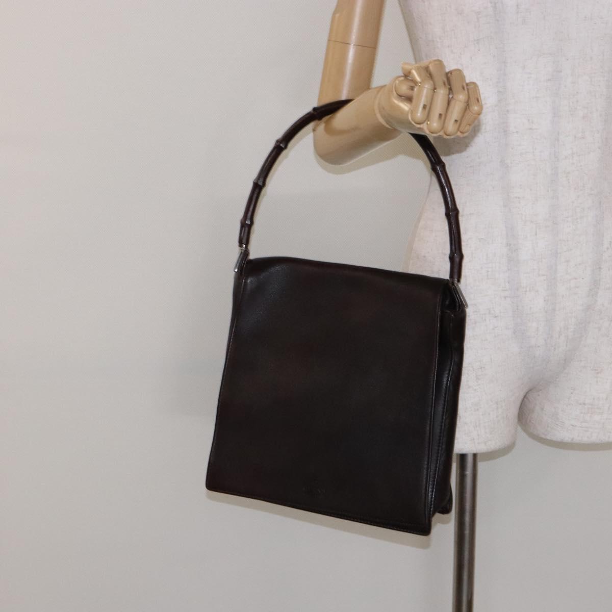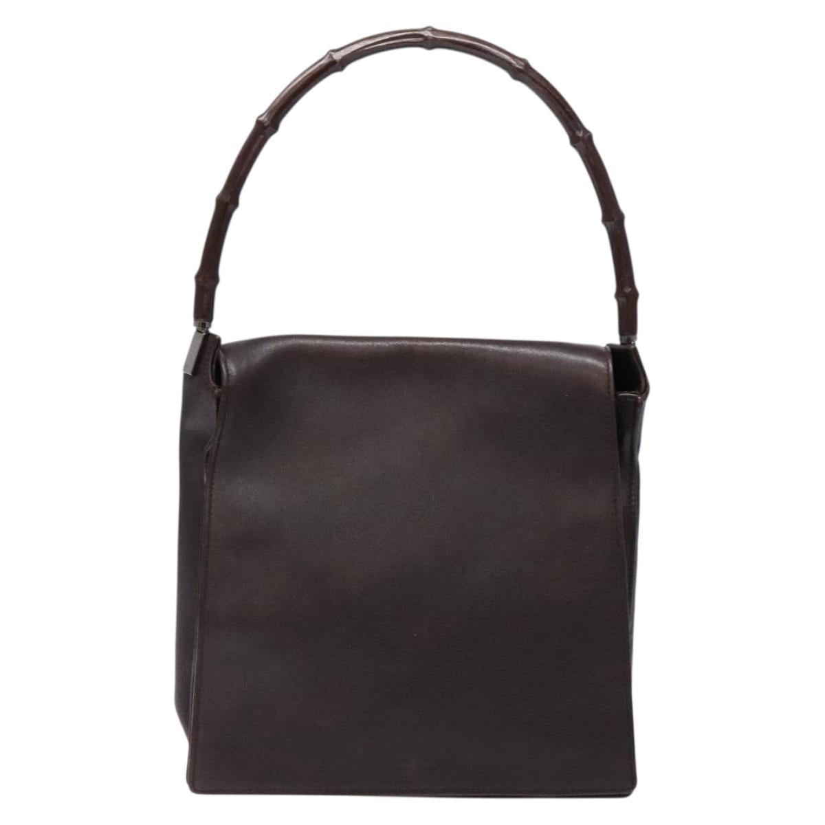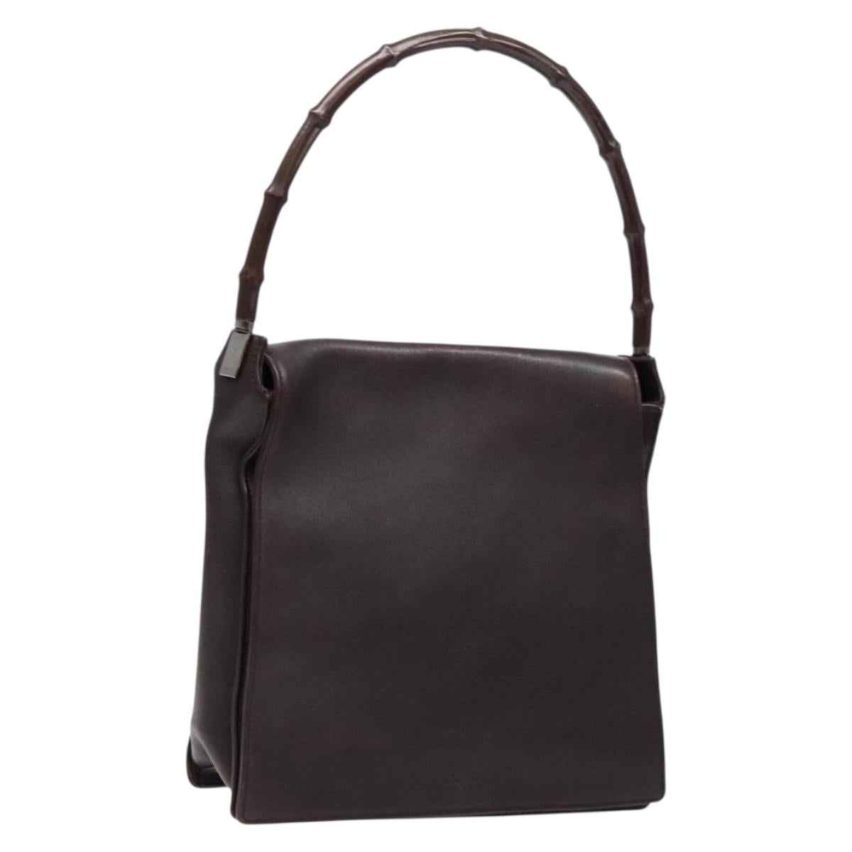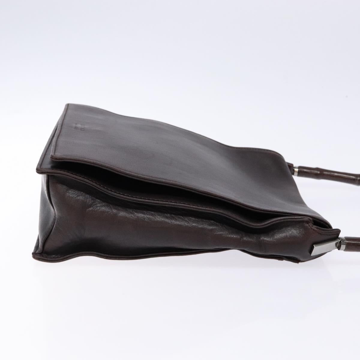 GUCCI Bamboo Shoulder Bag Leather Dark Brown 001 3243 Auth 137491