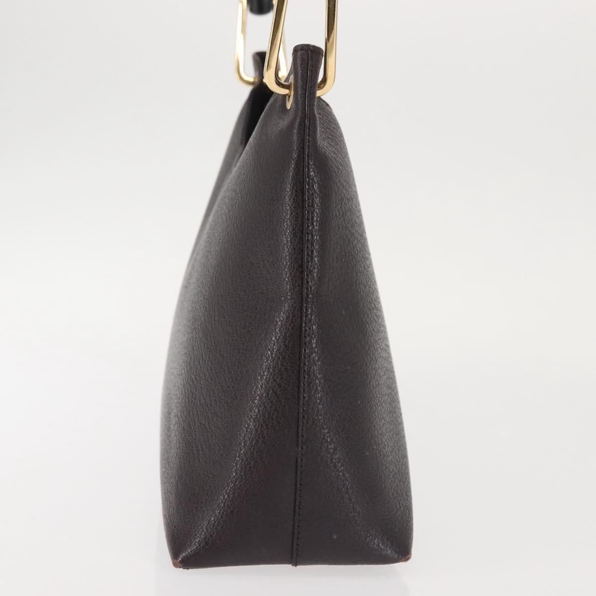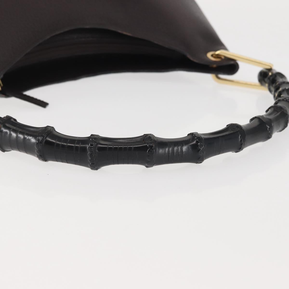 GUCCI Bamboo Shoulder Bag Leather Dark Brown Gold 001 3008 Auth 144134