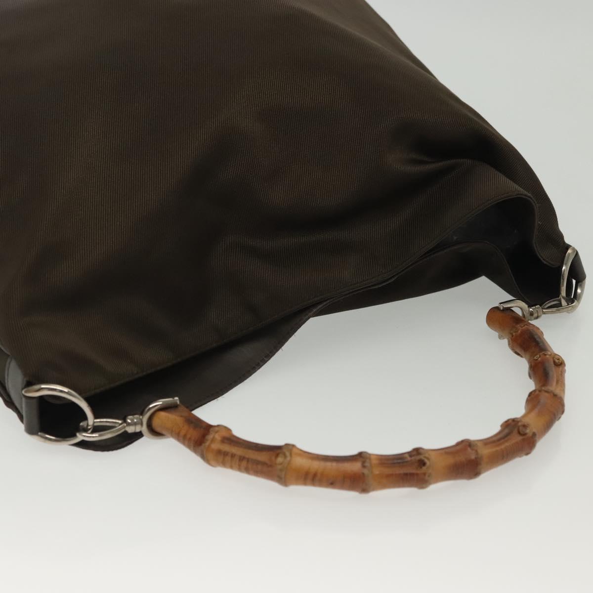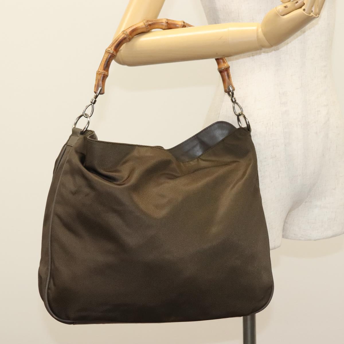 GUCCI Bamboo Shoulder Bag Nylon Green Silver 001 1998 1577 Auth 136842