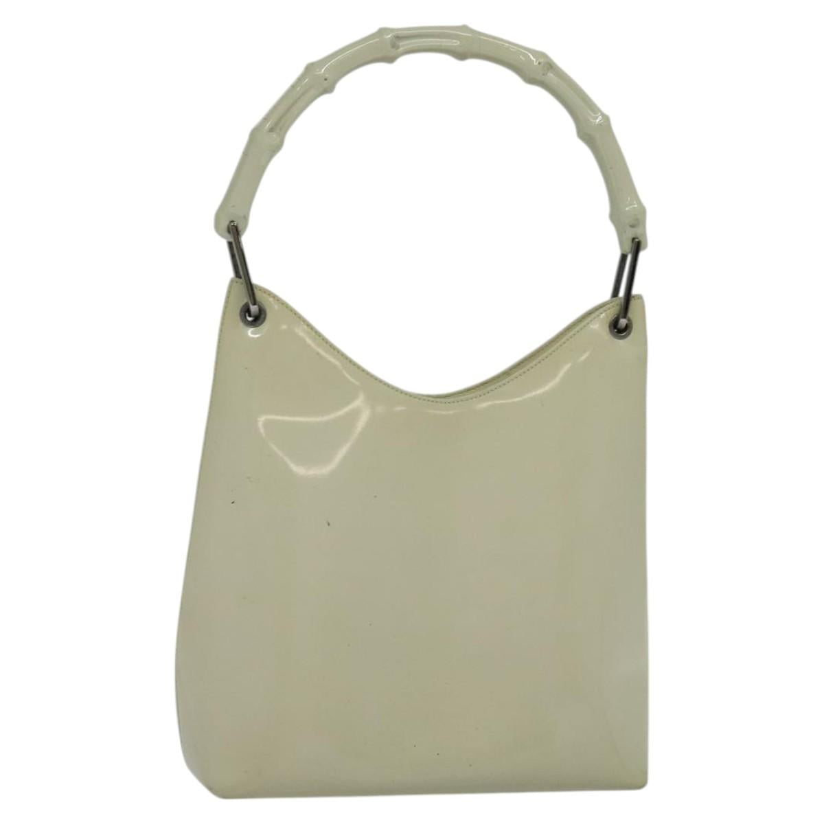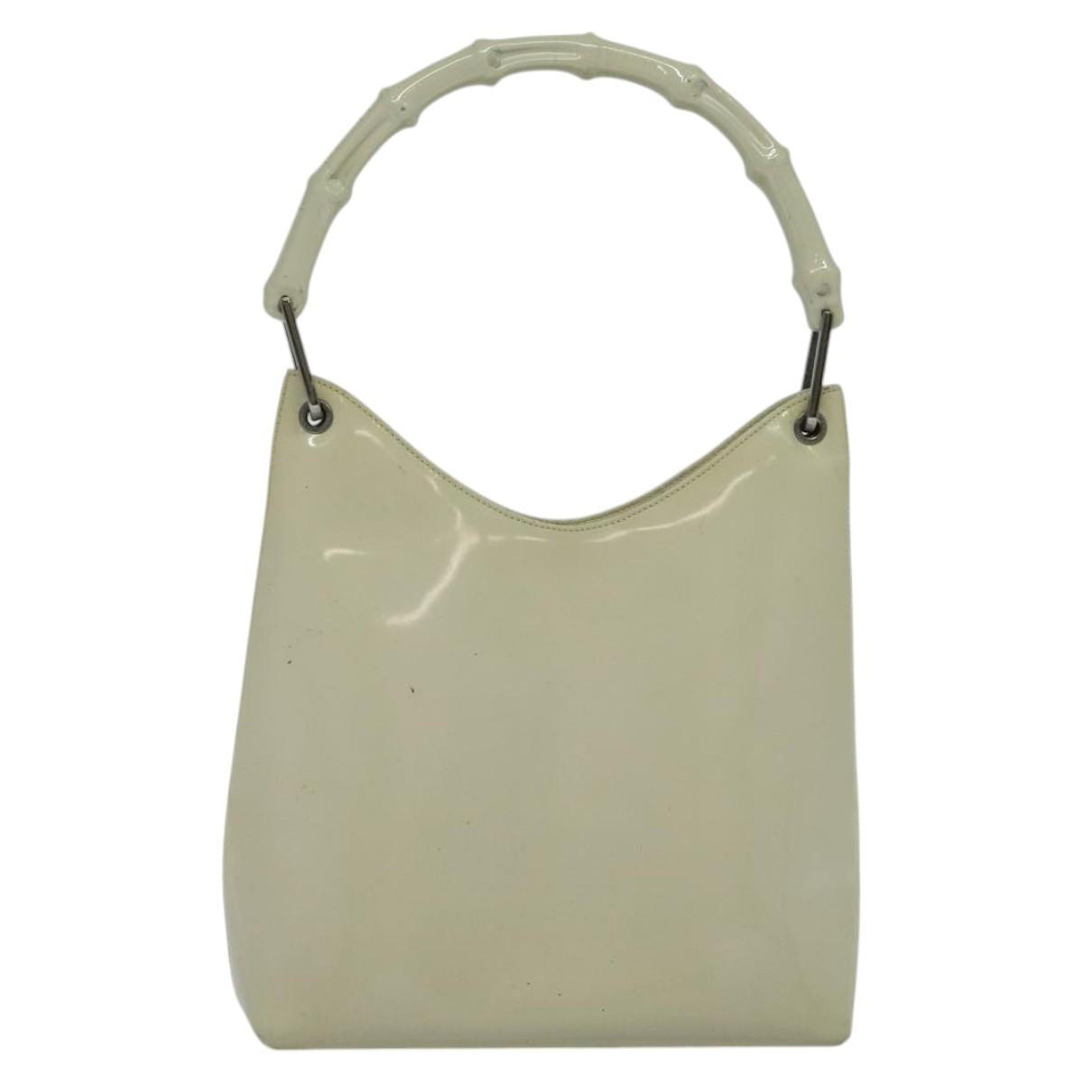 GUCCI Bamboo Shoulder Bag Patent leather Beige 001 2058 3007 Auth fm4523