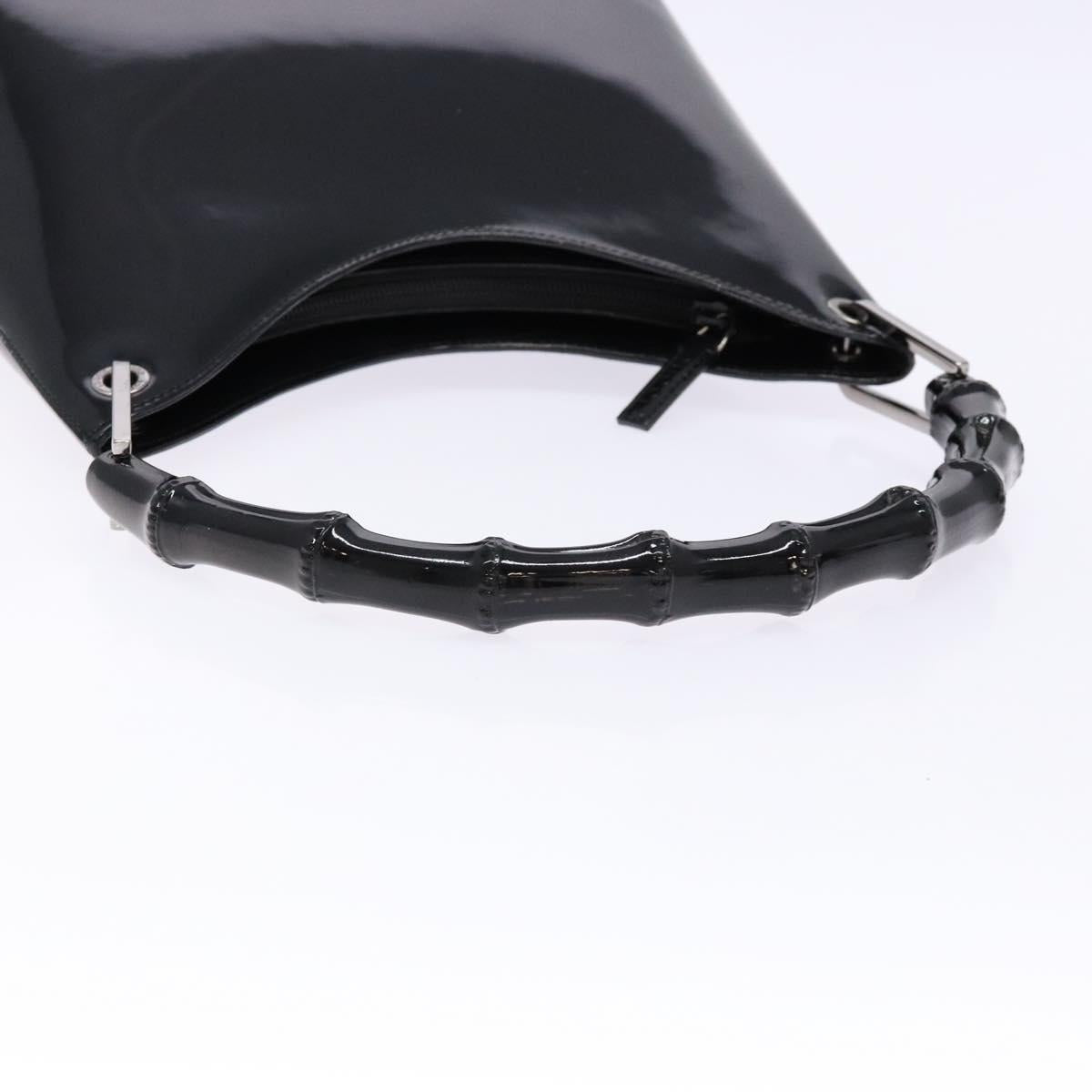 GUCCI Bamboo Shoulder Bag Patent leather Black Silver 001 1998 3008 Auth ep10067